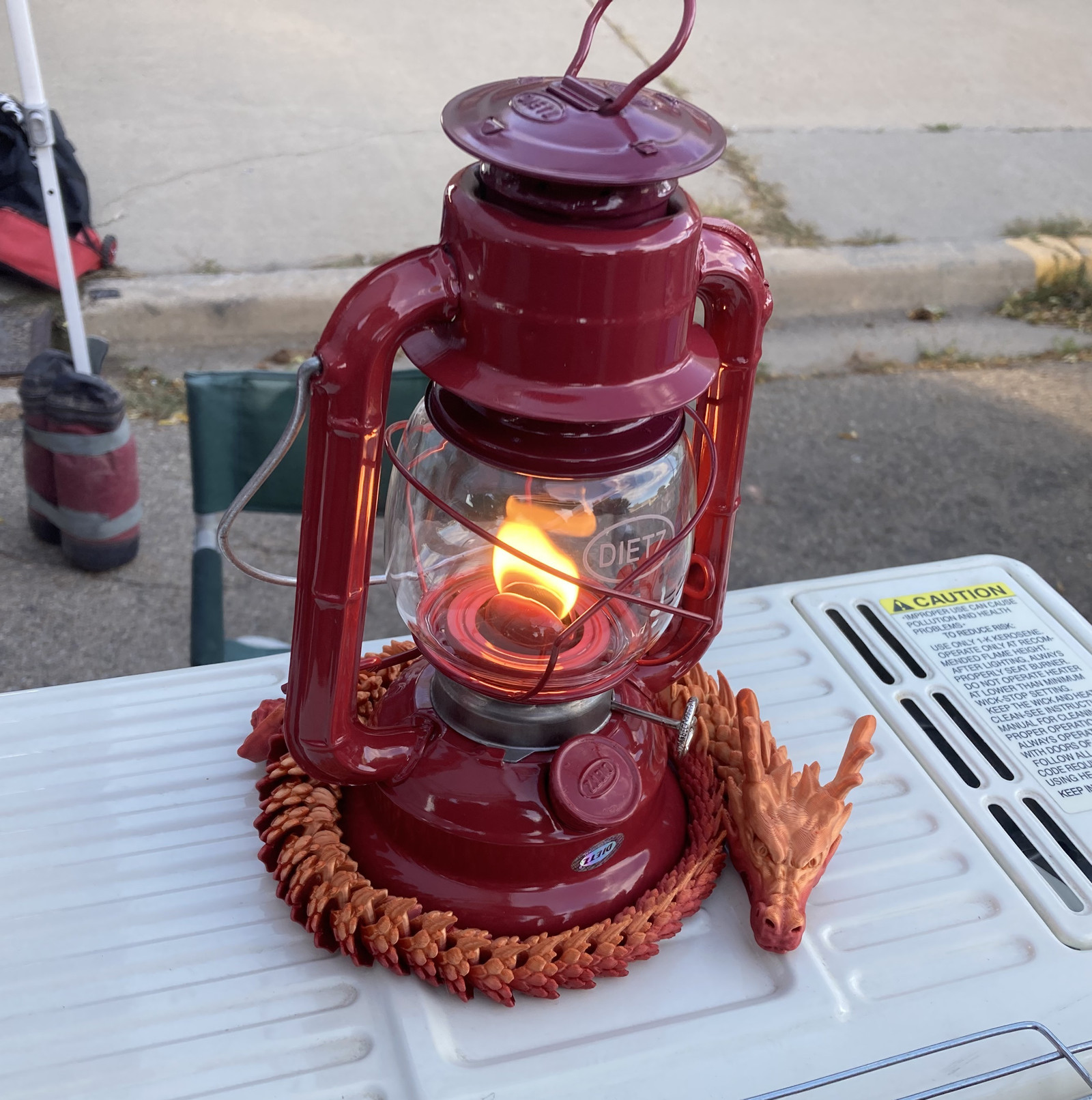 On the other hand… a dragon, curled up around a Comet, on top of a kerosene heater? Properly cute, and a very comfortable looking dragon!