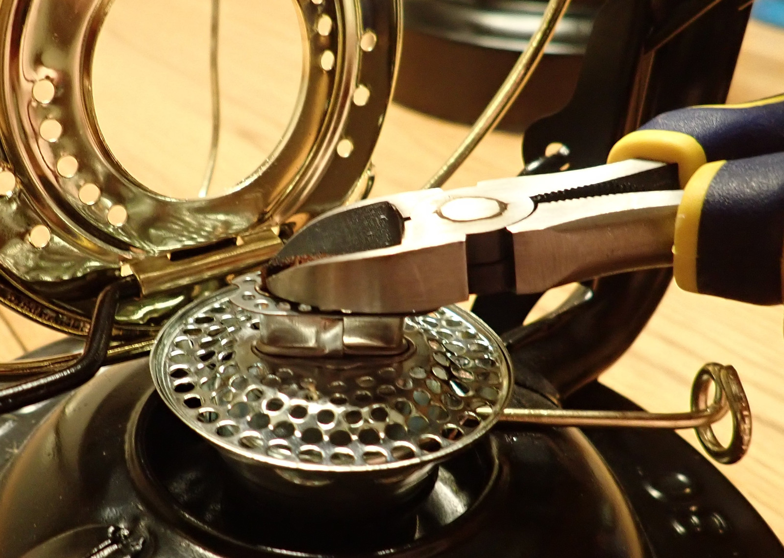 I’ve tried a number of different ways of trimming wicks, and while a good sharp pair of scissors works well, a nice sharp set of snips works even better - and is somewhat less likely to smoosh all the fibers over to one side. You can find these at any hardware store, and I’ll suggest that you should probably keep your lantern set away from others - mangling them on wire and random other metal will not improve their ability to trim a wick.