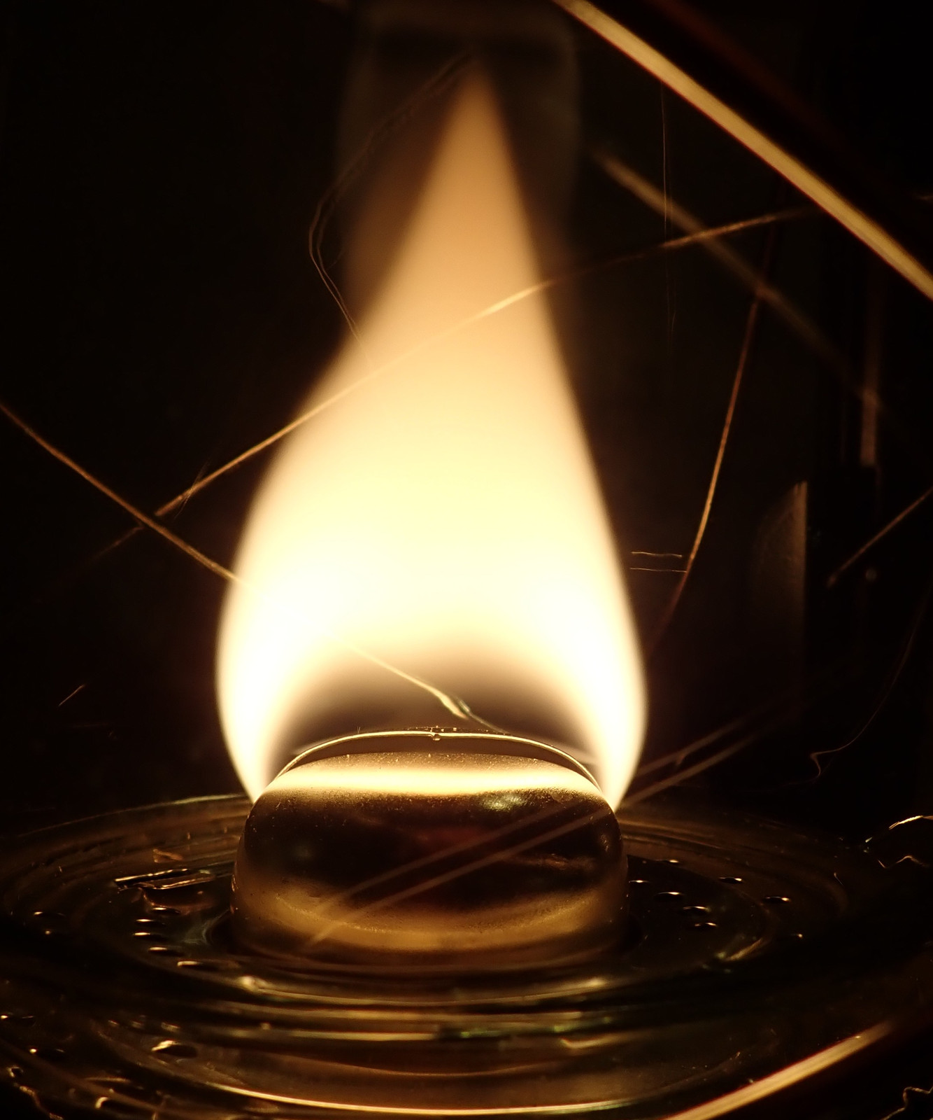 While any wick-based burner will burn the vaporized fuel off the wick, as opposed to burning the wick (ideally…), a cold blast lantern makes this process rather more clear than a typical candle. There’s a rather large gap between the wick and where combustion starts - at least when operating as intended. The flame will be much closer to the wick when starting with the globe lifted.