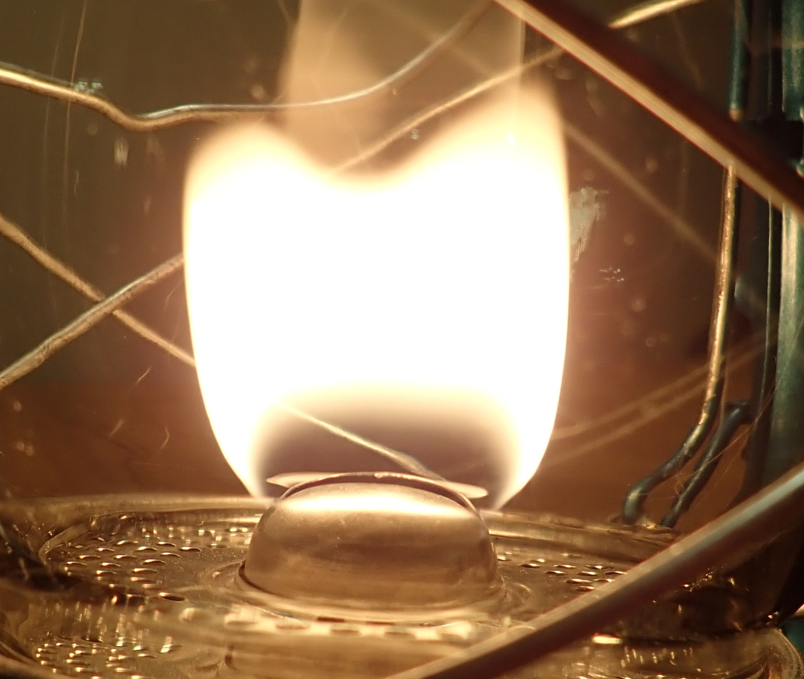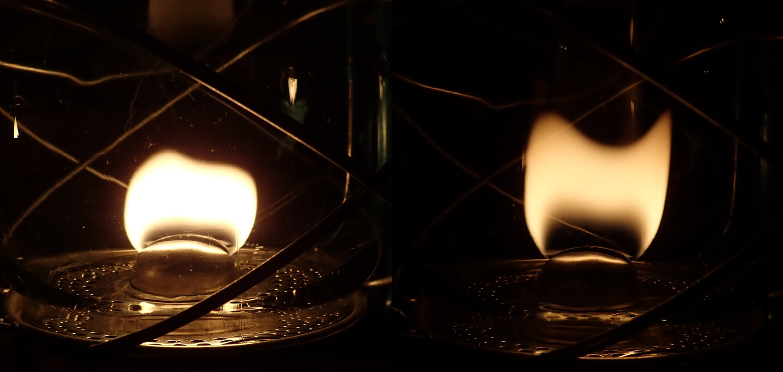 The Comet has a very large difference between a medium, reasonable flame, and really turned up - it can fill the full height of the globe before it starts smoking. The flame is quite close to the top of the lantern, and that will be obvious later on with the thermal images.