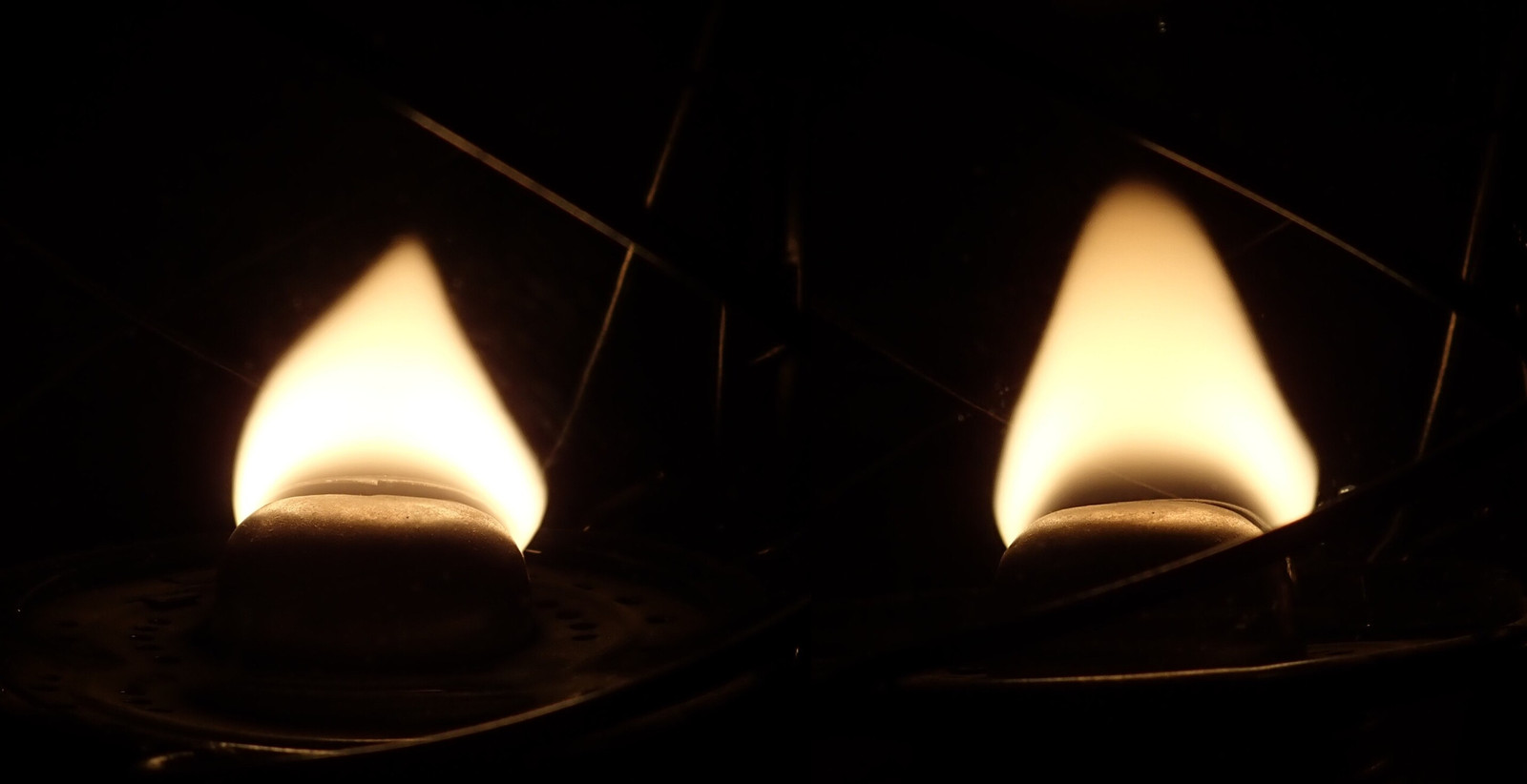 I can only assume the left is a touch longer than the right side based on the flame, but this is an active enough flame (the top flickers and dances) that I don’t find it worth the effort to really fine tune it much more.