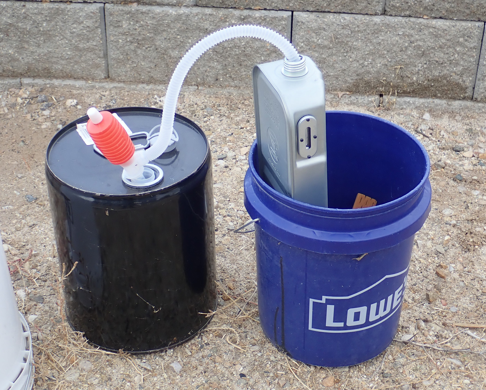 While the heater will burn for 10+ hours on a fill, eventually you’ll need to refill it. There are several ways to do this, of various levels of “messy” and involving funnels, but the best method, as far as I’m concerned, is a big 5 gallon tank - and a kerosene pump. The metal container will hold kerosene in a usable state for longer than plastic, and the kerosene pump just sucks kerosene out and squirts it into the fuel tank without much in the way of a mess at all! I pump until the fuel level gauge is full, and then drain the hose into it - there’s enough room left for that.