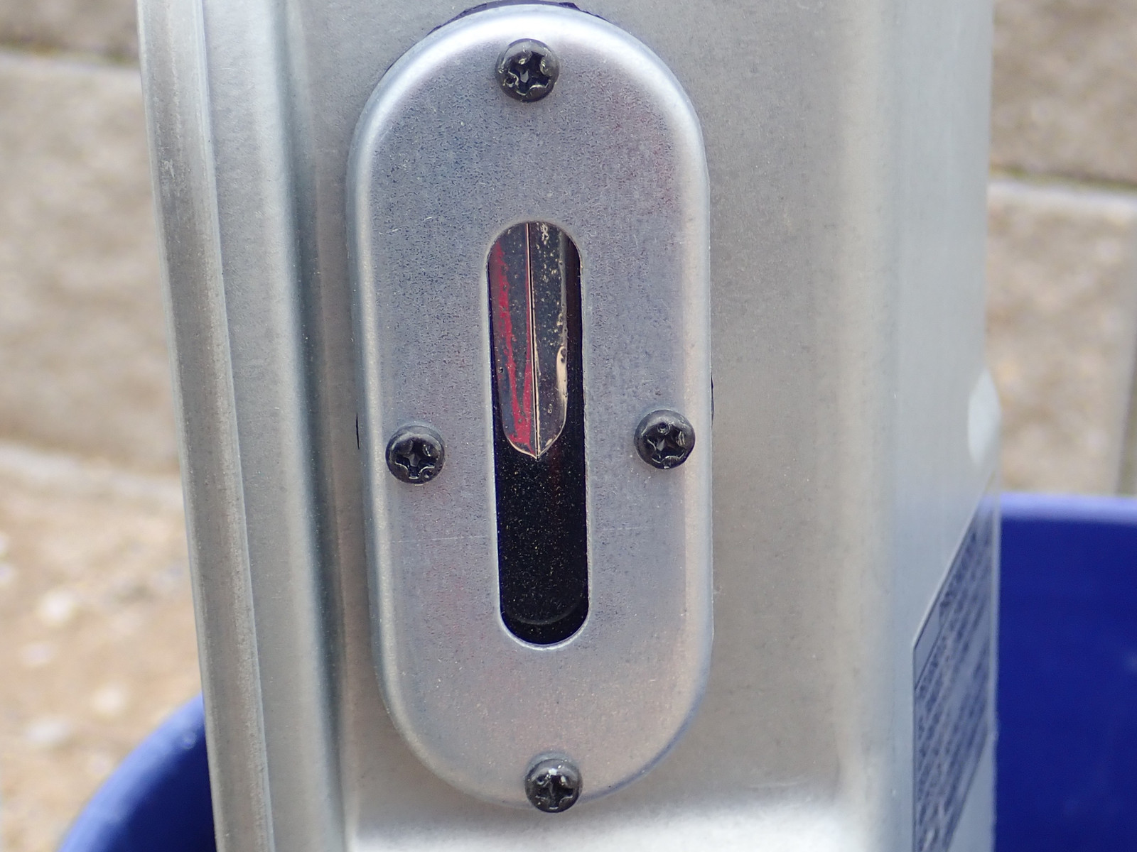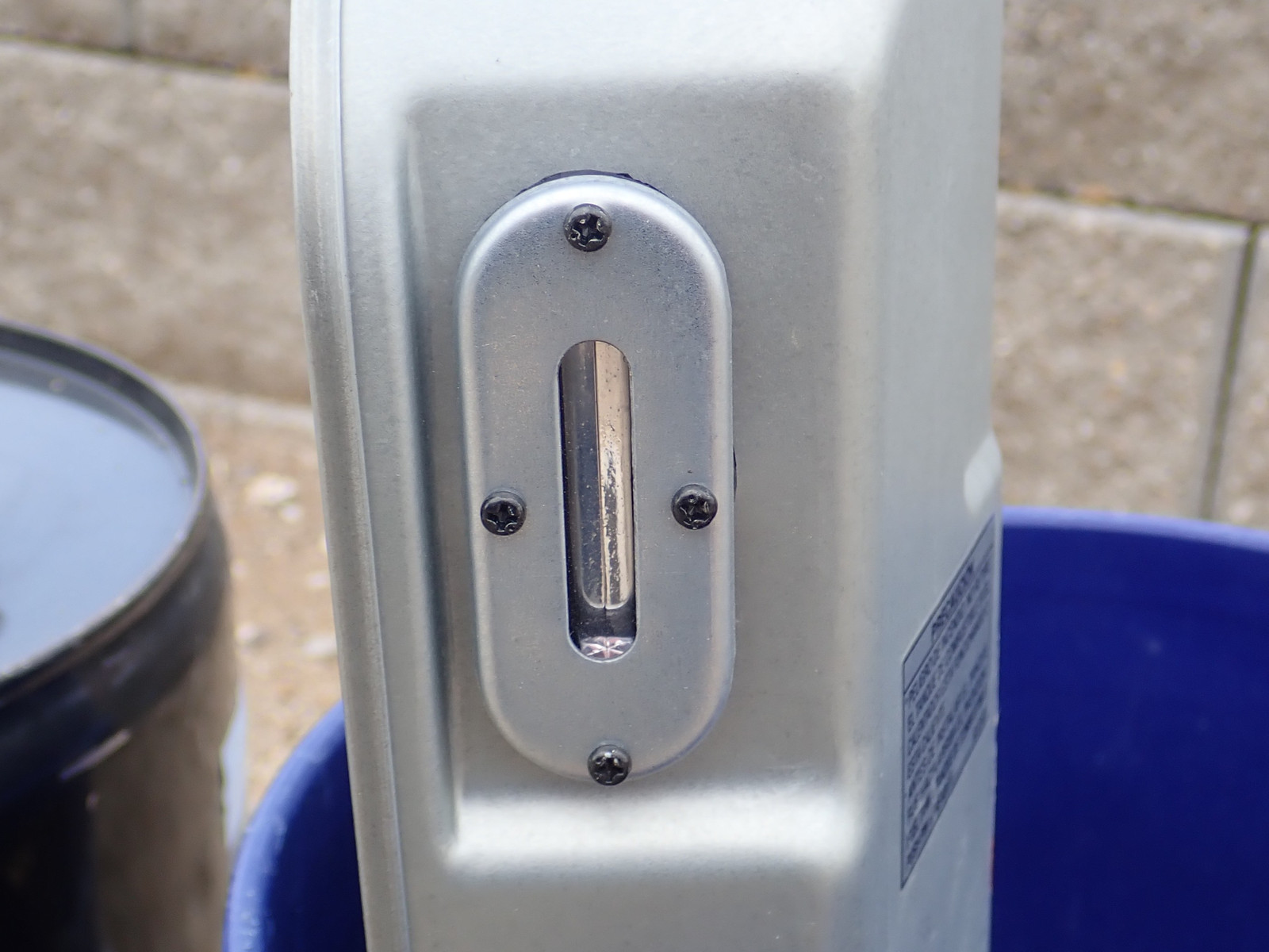 I mentioned the fuel gauge - and it’s useful both while burning (though it only shows the hour or two of fuel), and also while filling (because it shows you when the tank is almost full). I’m not always a fan of the “random liquid” sort of gauges, but this one seems to be well designed and works as hoped. Here, there’s no kerosene in it (except that tiny curl at the bottom from surface tension).