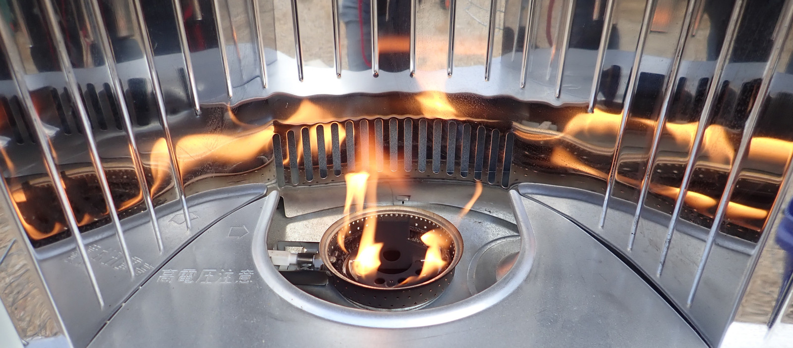 Try to go from low to high, and you’ll notice an awful lot of blue flame licking out the top until the cylinder heats up! Fortunately, the blue flame is low carbon and doesn’t tend to soot up the top of the heater.