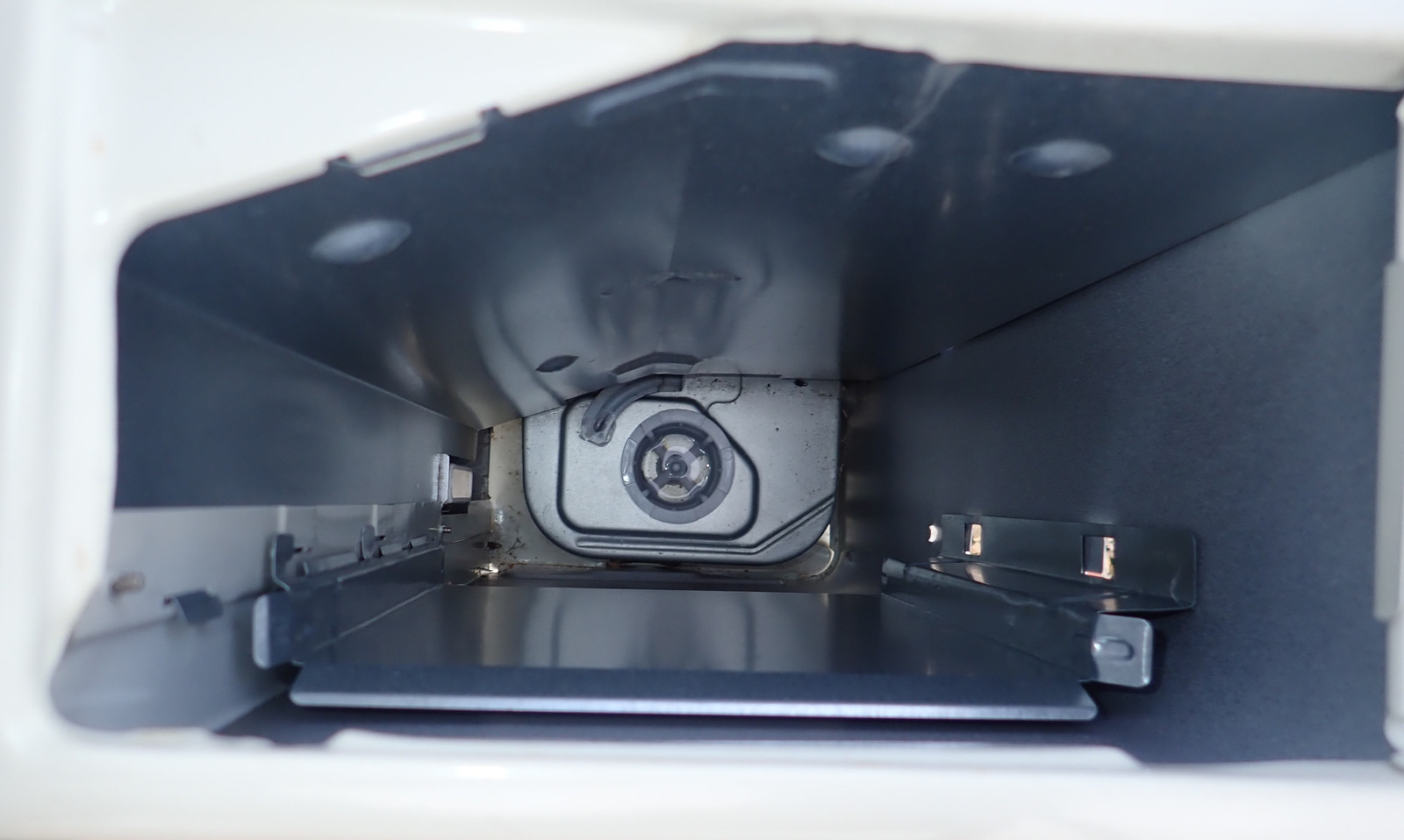 However, the lower front panel? You’ll need to remove that to get further in. Two screws should pop the panel free, and after you remove the handle from the control lever, you should be able to lift the front panel up and see something faintly resembling this! The weird little tube off to the left is a vent from the font below - there’s a lightweight flapper on it that allows any excess pressure to vent.