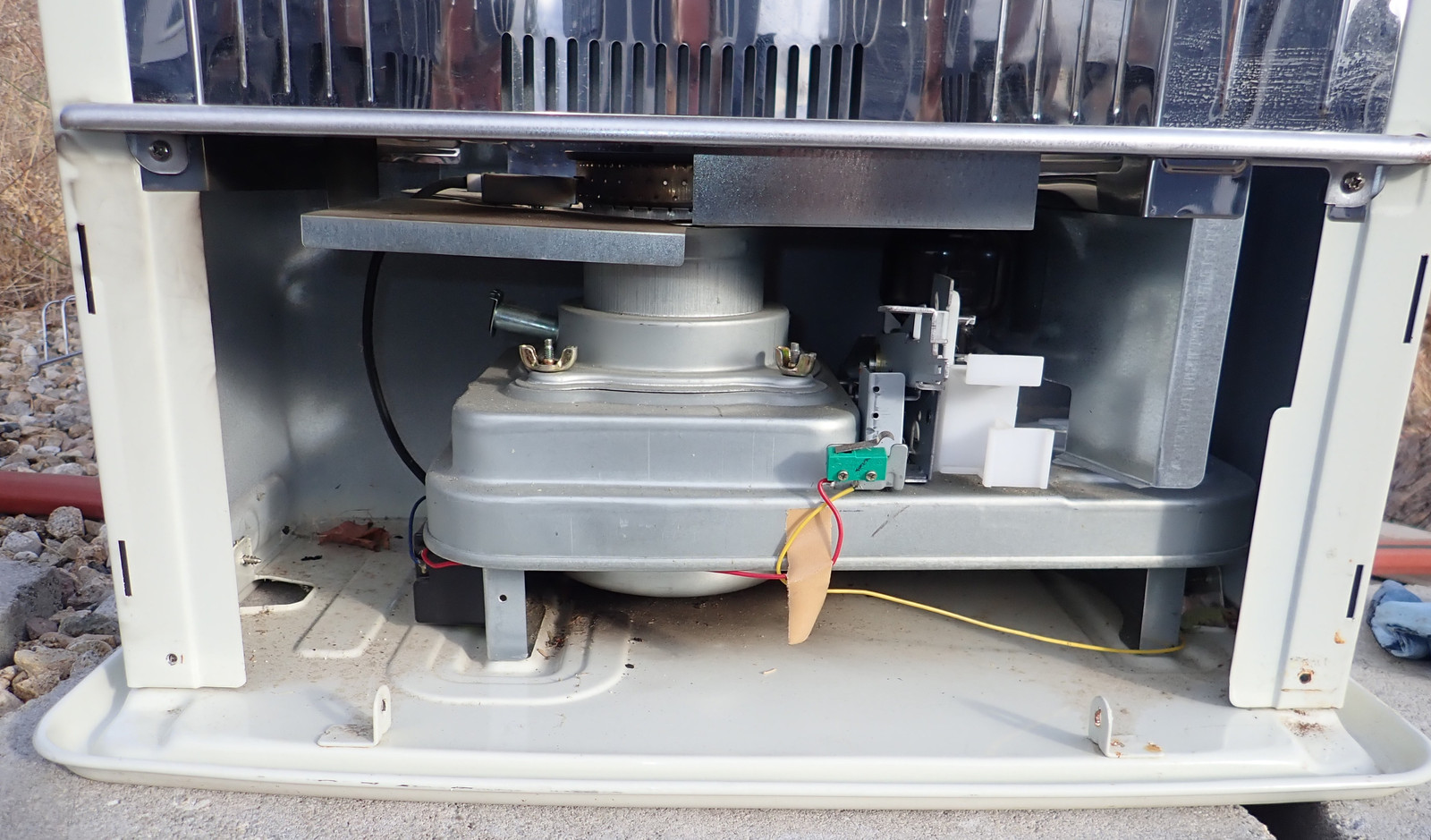 It’s hard to see the angle here and the fluid level, but I have the heater tipped 20-30 degrees to the right. Even that isn’t enough to spill kerosene from the font (at least without the fuel tank in). Initial transport of these was a bit of a challenge, because I didn’t fully understand the mechanisms involved, and the kerosene would slosh enough to let the tanks drain more in - which then proceeded to spill out and into the base trays. The right answer, verified by the teardown, is to transport them with the fuel tank end uphill if possible, and the fuel tank out. Do this, and they don’t seem to leak in transport. At least on mine, the fuel tanks seal quite tightly when out of the unit.
