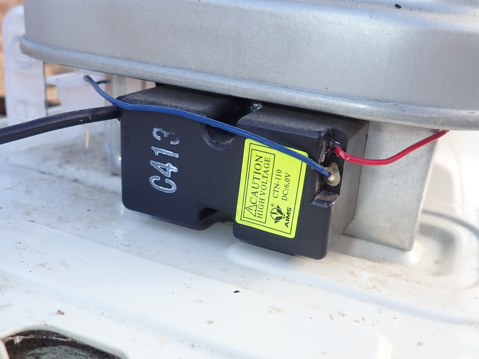Finally, there’s the igniter. This system starts with the batteries in the back, through the microswitch, to this boost converter that jumps the voltage… rather high. How high? I don’t know, but it makes a nice solid arc!