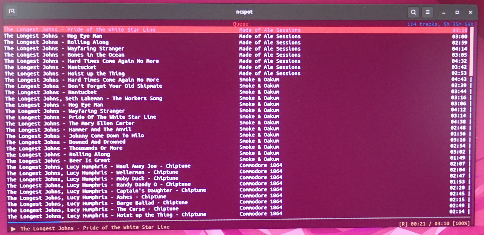 This will, of course, inevitably fail with some sort of esoteric error relating to how things are being compiled… and at that point, you use rustup to pick a version of the rust compile that isn’t broken on ARM. Unless it doesn’t, at which point, consider yourself lucky and run ncspot!
