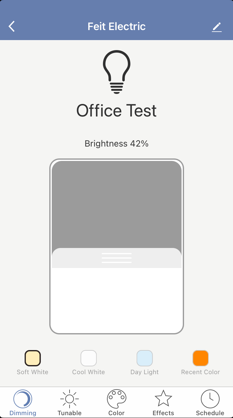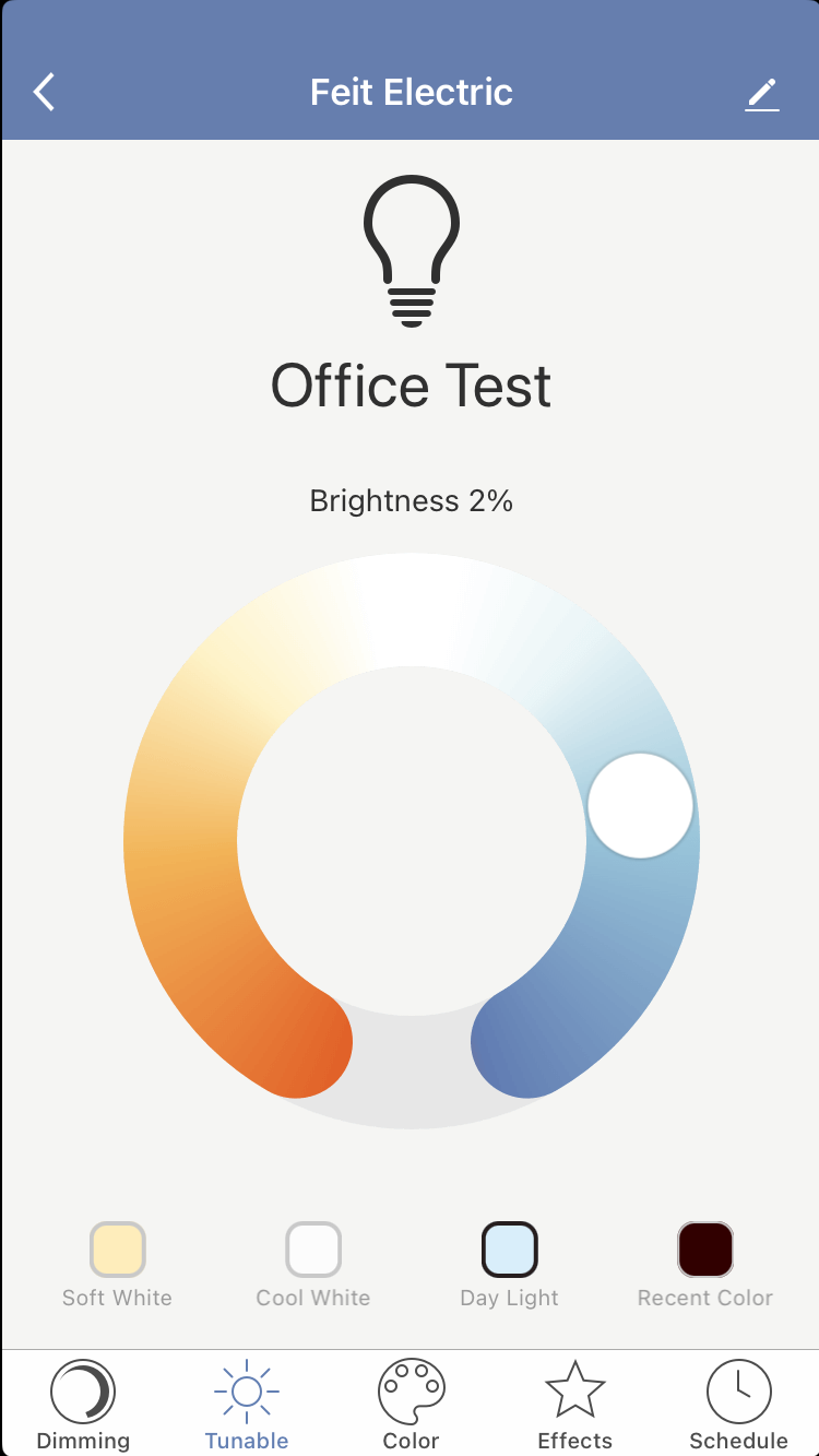 Select a bulb, and you have five options: Dimming, Tunable, Color, Effects, and Schedule.