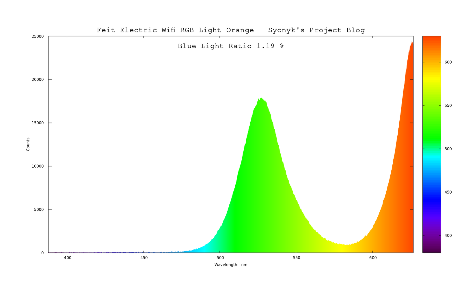 Why? To do some color analysis of a Feit Electric “smart” RGB bulb. I borrowed one to mess around with, and mess around I have, because one of my previous posts involving LED bulbs has raised the obvious question, “Well, what about the smart color changing ones? Are they any better?” And while I object, in almost all possible ways, to the concept of a “smart light bulb,” it’s a valid question and I’m interested in providing some details on it.
