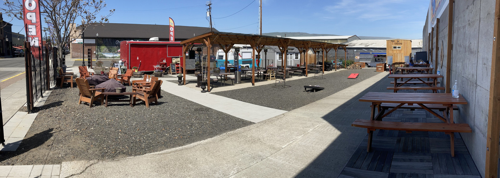 There’s also a very interesting outdoor “food/beer/games/gathering” area that I’d like to figure out how to create locally. It was early in the season and not much was open, but there are a few food trucks (or “tiny house kitchens”) around the outside of the area, a good selection of tables both around the edge and under cover, and some other seating areas. The tables in the center have a range of outdoor games (Connect 5 was one I saw), and based on the “No alcohol beyond this point” signs, somewhere serves beer.