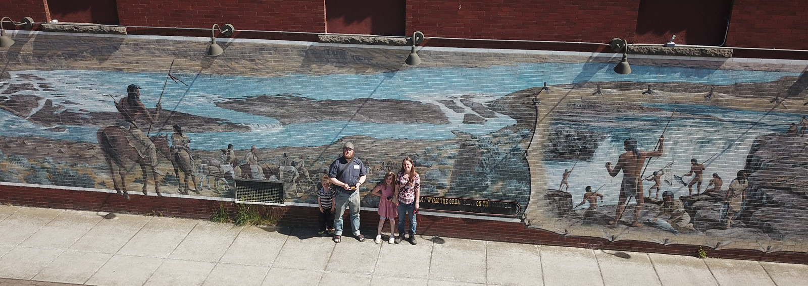 Continuing on theme of “Explore all the parts of the town we could find,” we spent an afternoon or two searching for and taking photos of our family with the assorted murals downtown - and enjoying our time downtown as well.