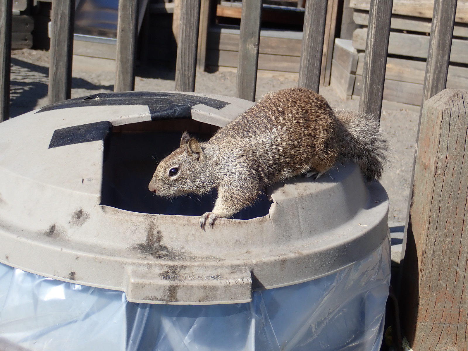 While we were there, we also saw some rather aggressively friendly squirrels. They were entirely comfortable with people, and one of them was trying to raid some breakfast items off one of the tables. I don’t have squirrels out here, and I grew up with them, so they’re always fun to see.