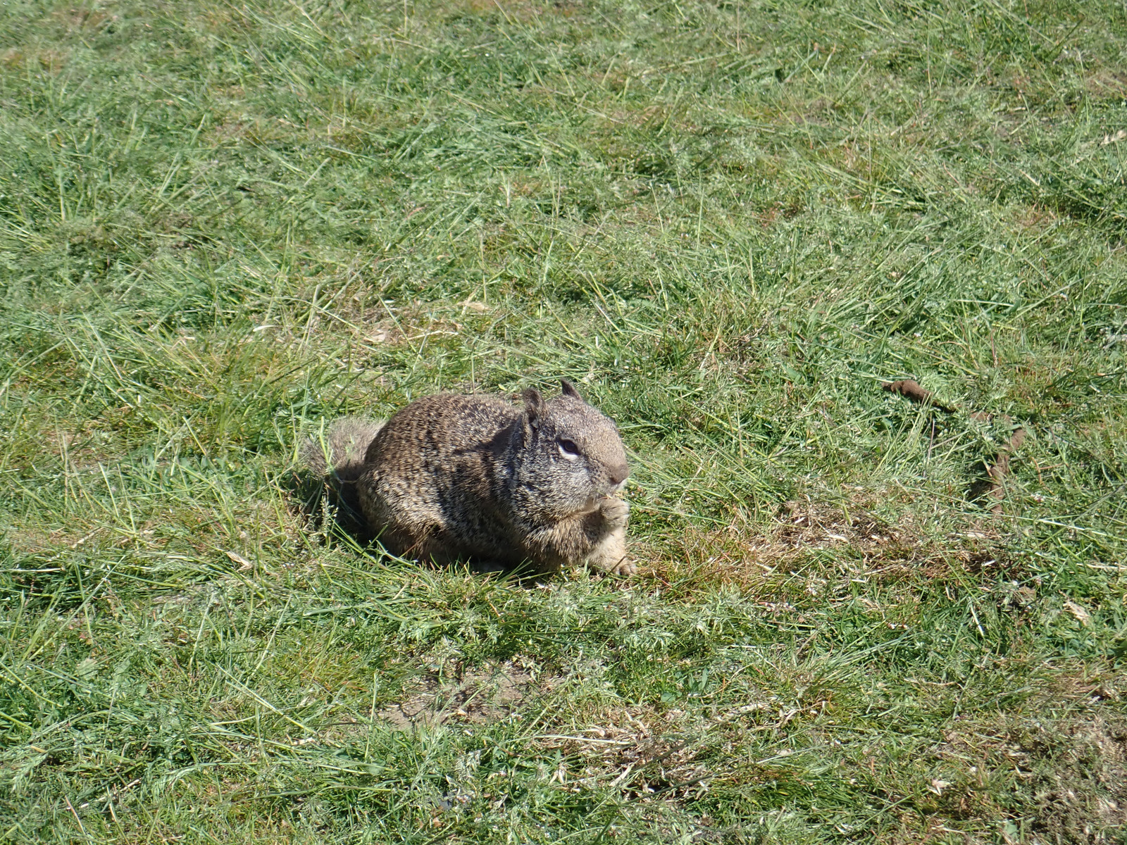 The big, fat squirrel seemed more than happy to just snack on grass, or whatever he managed to find in the grass.