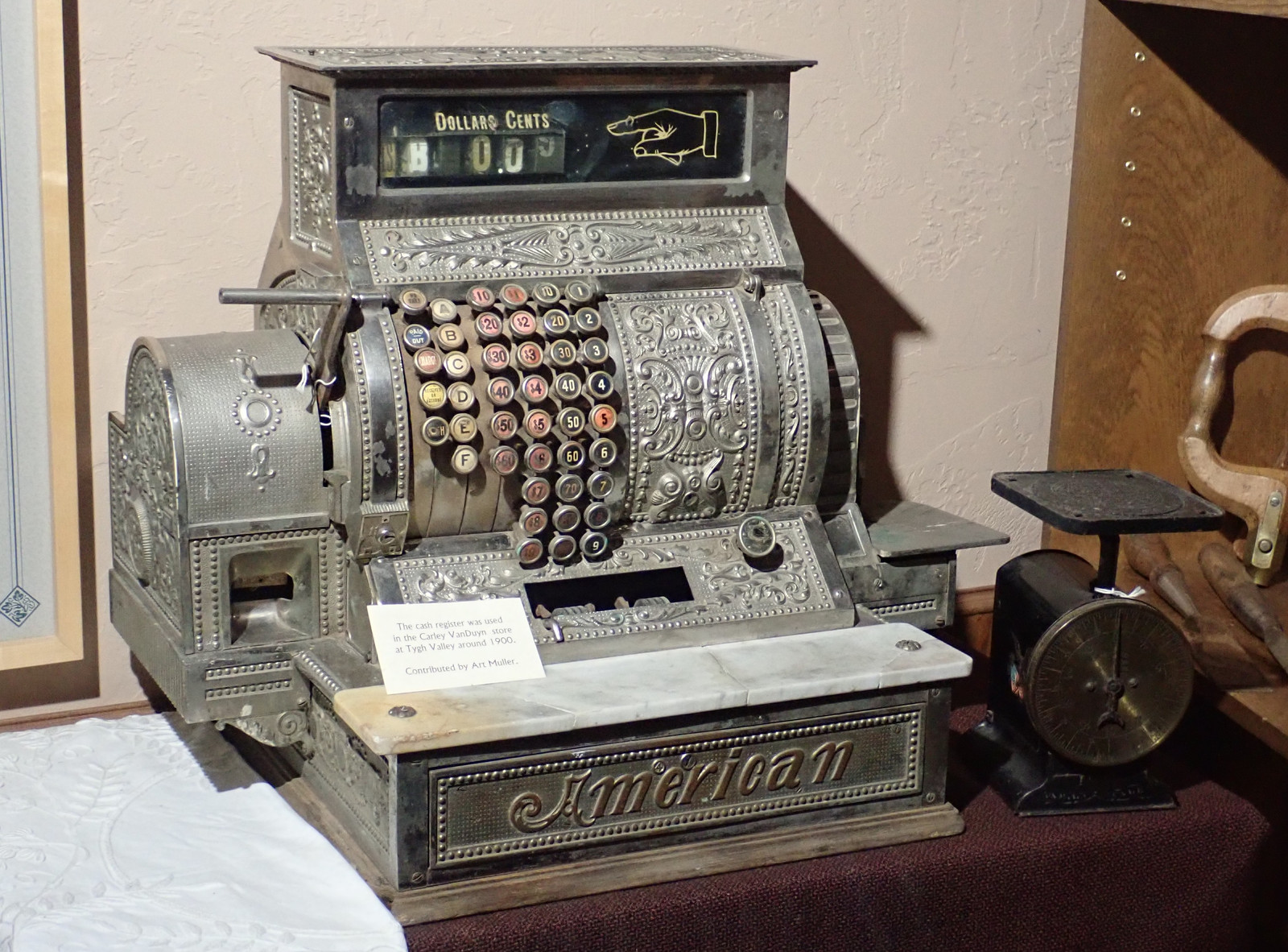 A roughly 1900 era cash register. I can’t say I prefer our current flat glass tablet style ones over this work of art. This sort of aesthetic, in which everything is well decorated and quite beautiful, regardless of function, is one of the draws of the Steampunk movement. Turning everything into black mirrors just hasn’t been an improvement.