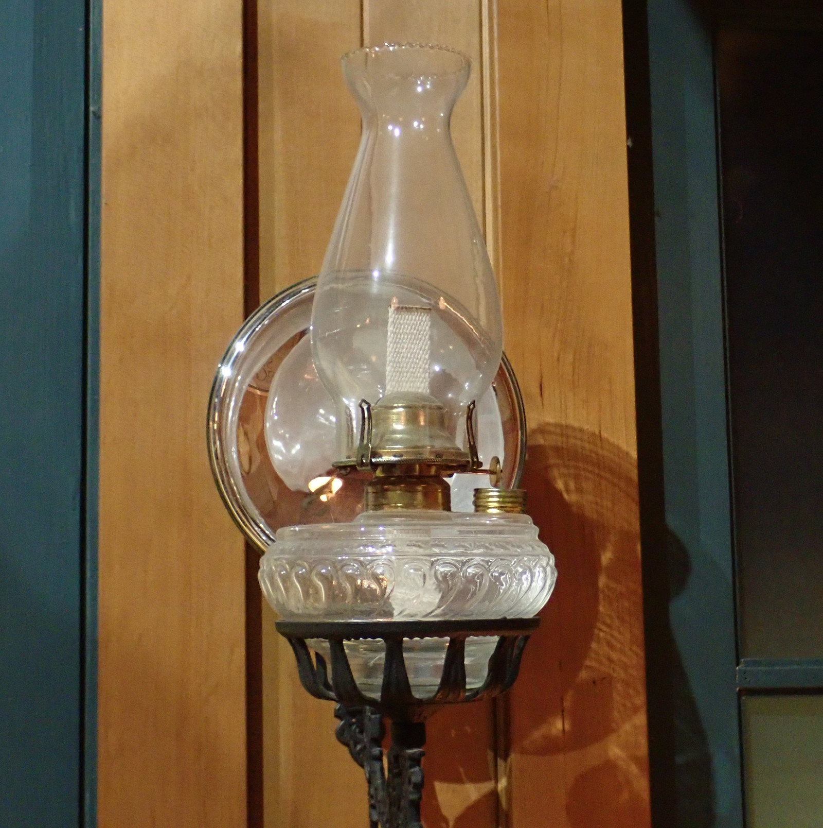 However, the kerosene lamp (dead flame, if you’re paying attention) clearly hasn’t been actually used. And that wick is more than a tiny bit high… but you can see the reflector behind it that was used to help ensure that all the light was being sent in a useful direction.