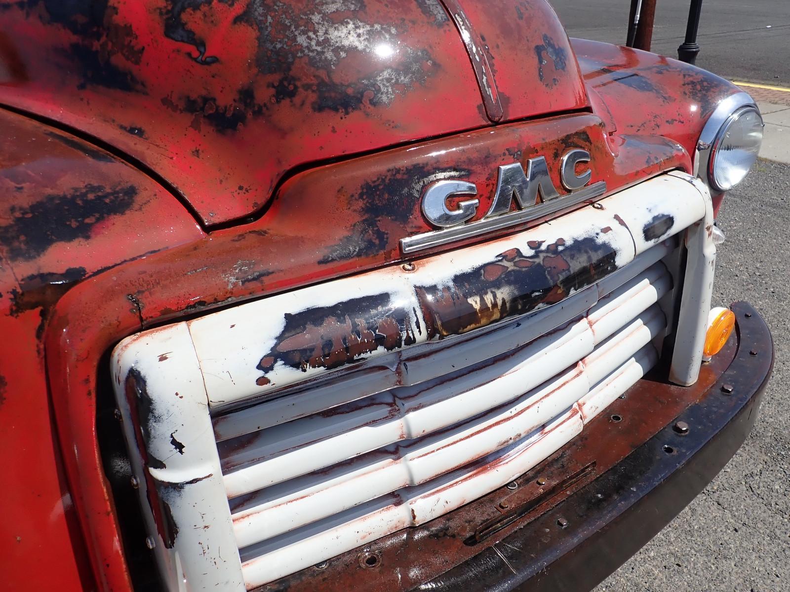 In one of the parking lots, I found one of the more baffling things I’ve come across in my life. This is an old GMC truck that seems to be in perfectly usable condition, which isn’t unusual in my world. But… look at the finish on it. Look at how it shines. That’s not normal for an old truck.