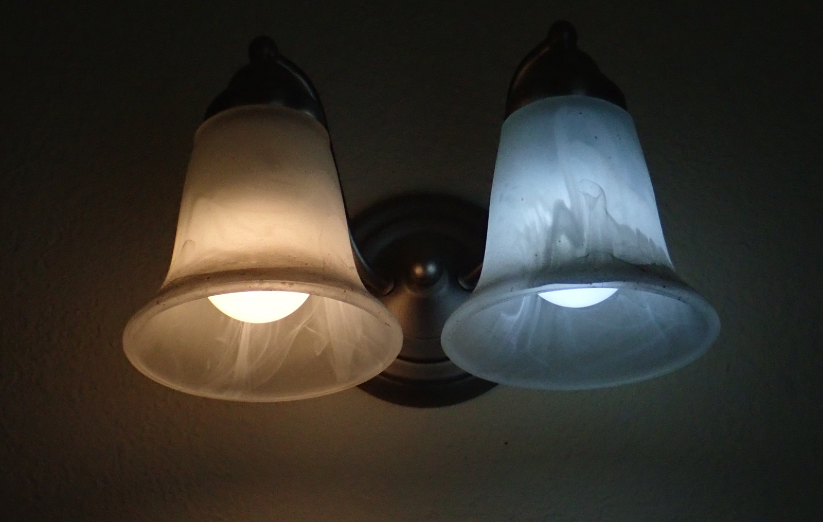 But these are, at least, better than some other bulbs as they dim. I’ve got one of them next to a normal 5000K bulb, and you can really see the color difference - but this is bright.