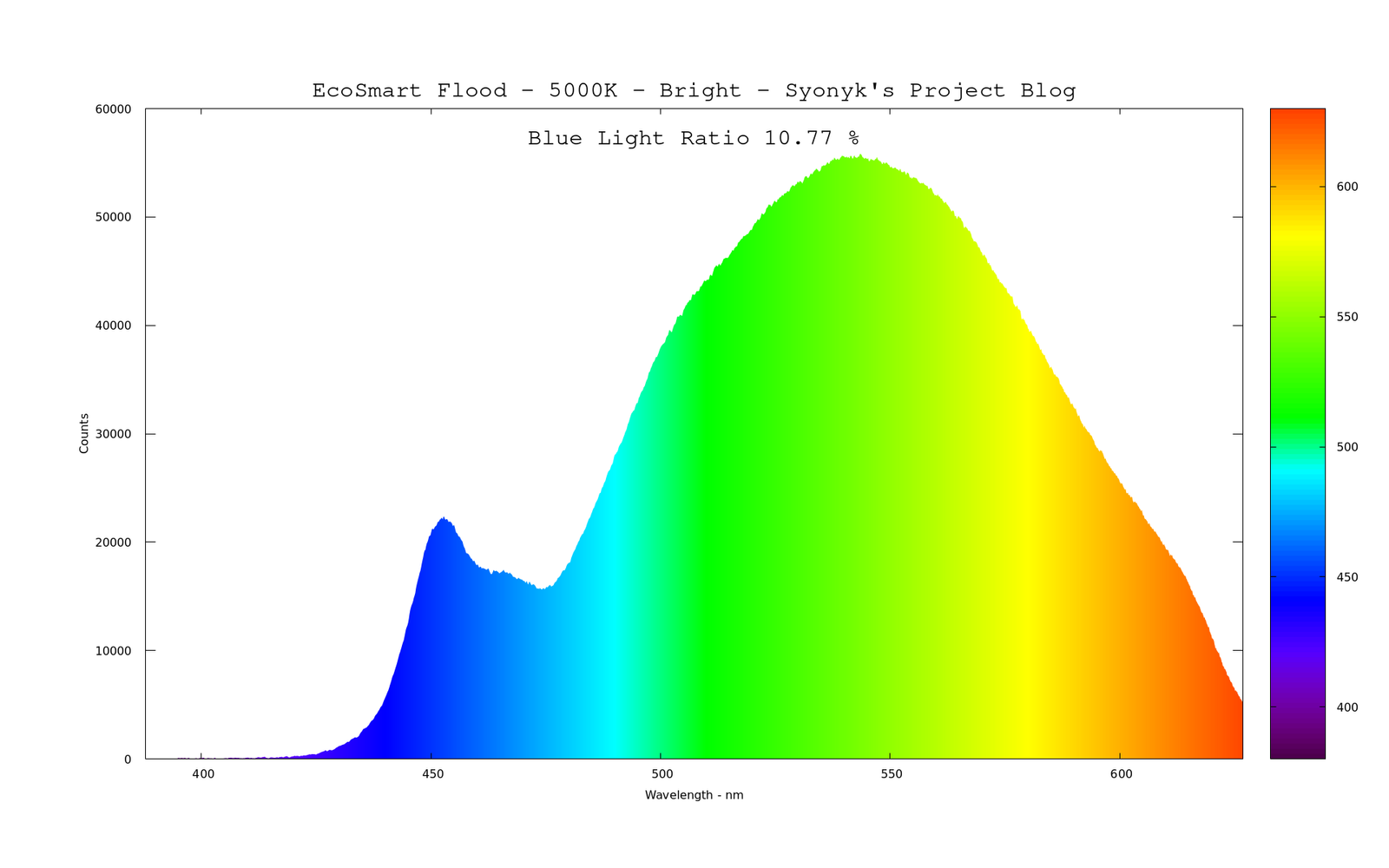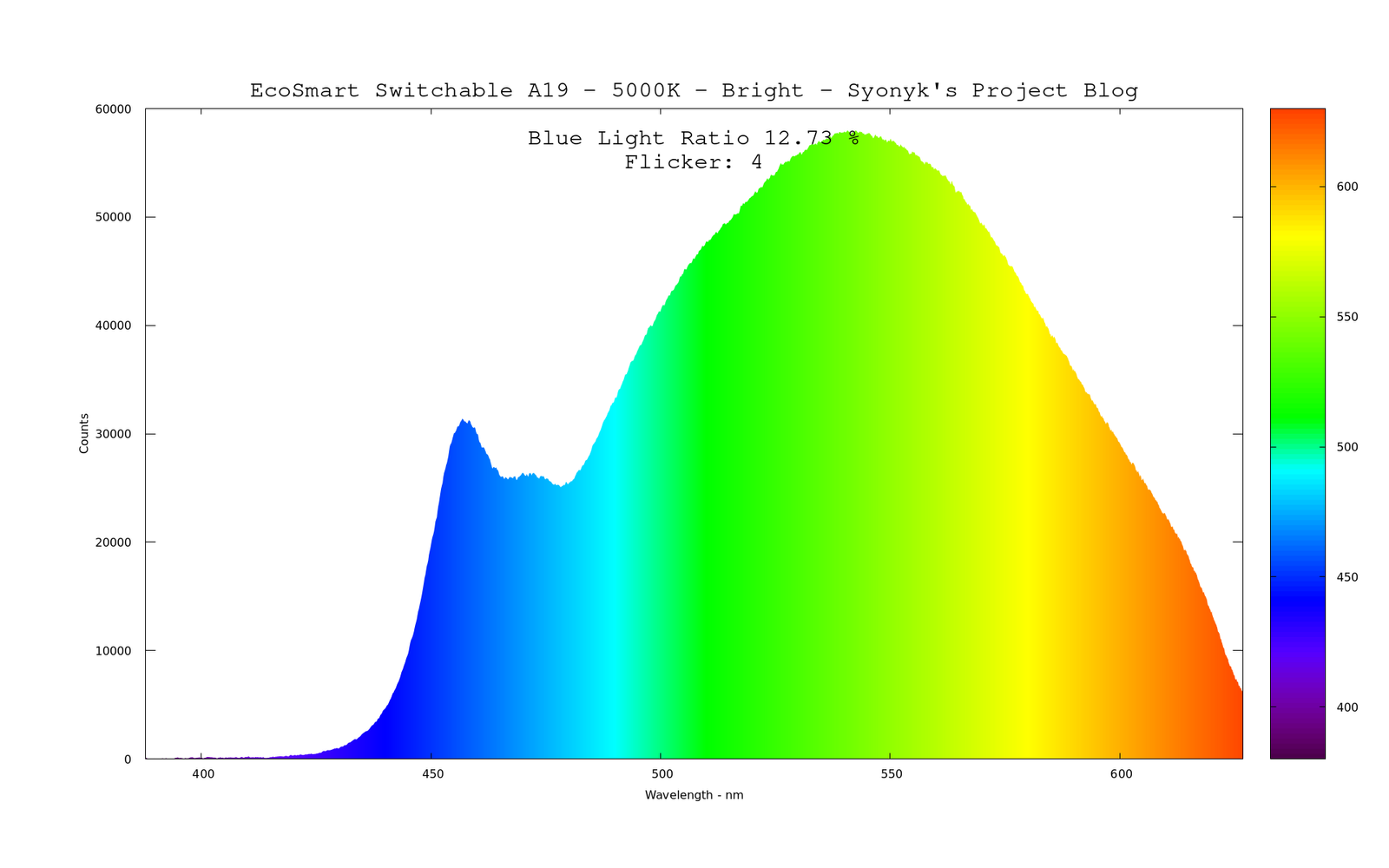 All the way up at 5000K, it’s… yeah. That’s a 5000K bulb. Very blue. Nothing spectacular here, nothing special to report. Just a normal enough white LED curve.