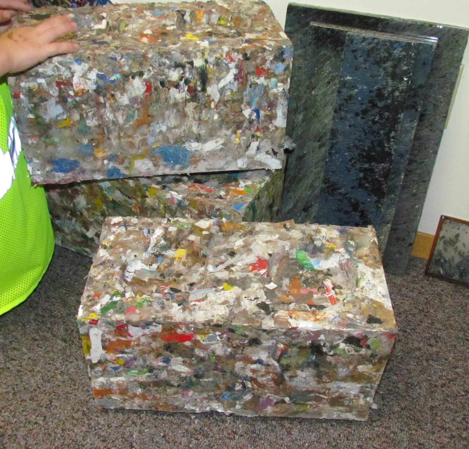 Ada County has been partnering with Hefty in the “ReNew program” (formerly the EnergyBag program) for some while now, and so they have a steady suppy of “weird plastics” - stuff that isn’t your normal #1/#2 jugs and bottles. The original plan to turn it into diesel fuel didn’t really work out, so a bunch has been going to a cement kiln in Utah to be burned in place of coal, but there’s also some other work that’s been done more locally with it, and a few of these options are on display at the education center (still a work in progress - it’s the old office building at the entrance).