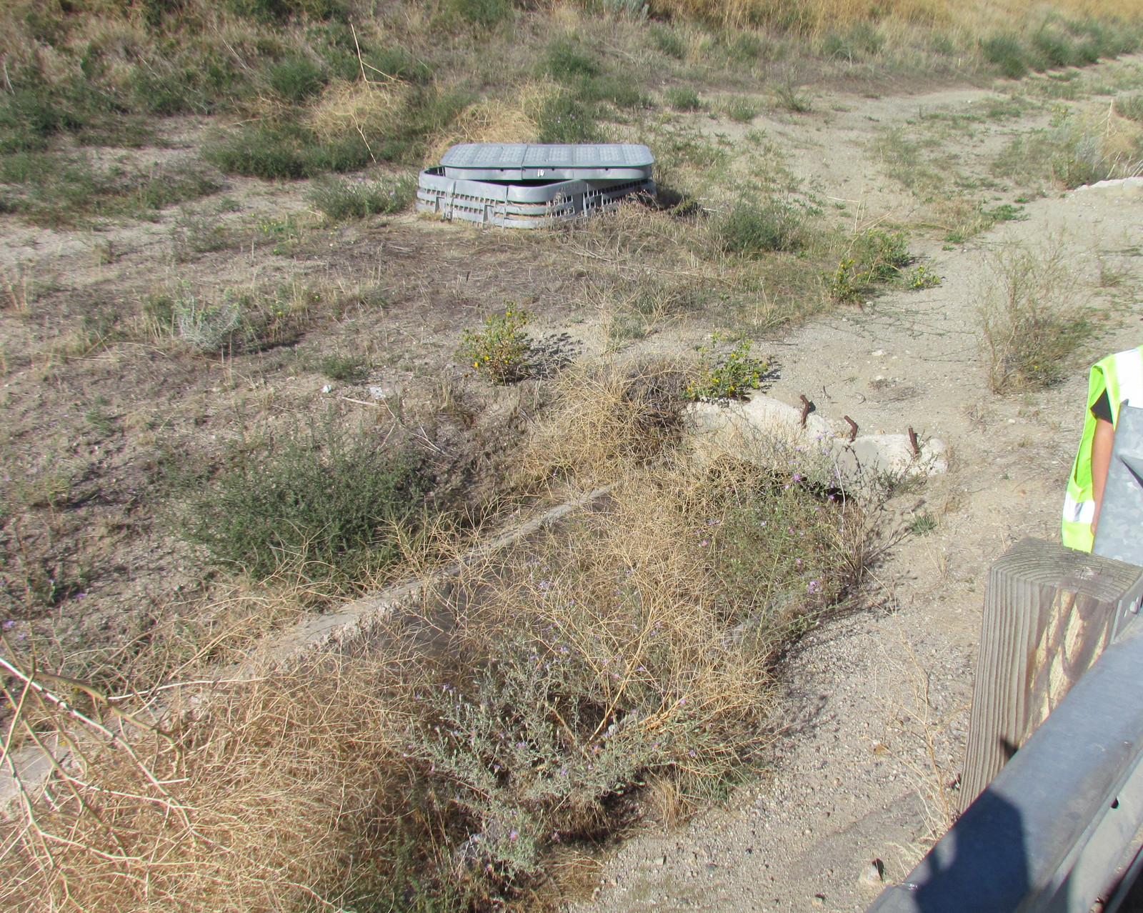 Around the base of the mound, a concrete ditch serves to route water - both to handle water coming from the mound, as well as to prevent water from elsewhere from leaking in and adding to the water handling requirements. Water that’s gone through the landfill is called leachate, and is handled on-site as well.
