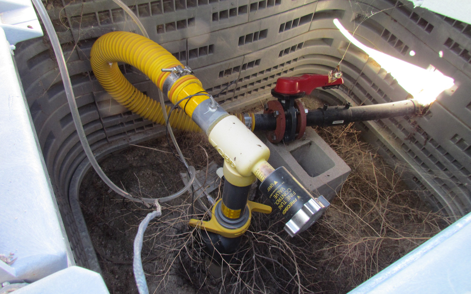 Finally, there are some in-ground wells - which are an excuse for a bit more detail on the well heads. They’ve got a main shutoff valve (in the back), a fine flow control valve at the top, and some piping. The system runs at a negative pressure - to help prevent leaks, gasses are sucked out through the system. There’s also regular monitoring of the wells to ensure they’re behaving as expected. The entire gas extraction system seems to be fairly high in terms of manual monitoring and control, but it keeps things routed for proper handling.