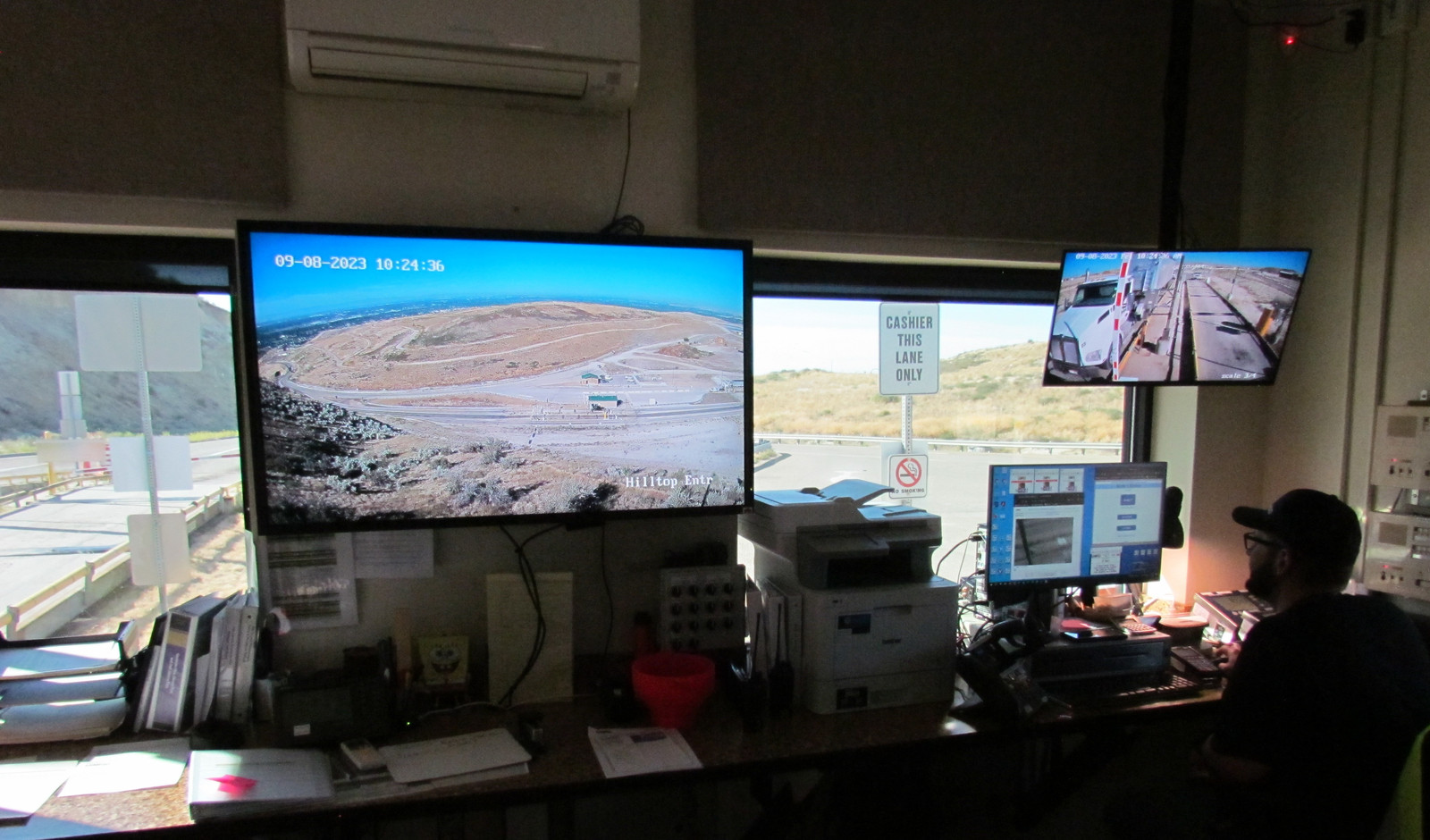 Inside, it’s mostly windows and monitors, with a few people manning the various stations. Because the landfill is accessed via a rather winding road, some remote cameras let the staff see what’s coming up the hill. They weigh people in, make any special notes about the load (tires, hazmat, “just here for birdwatching,” etc), and send you on in.