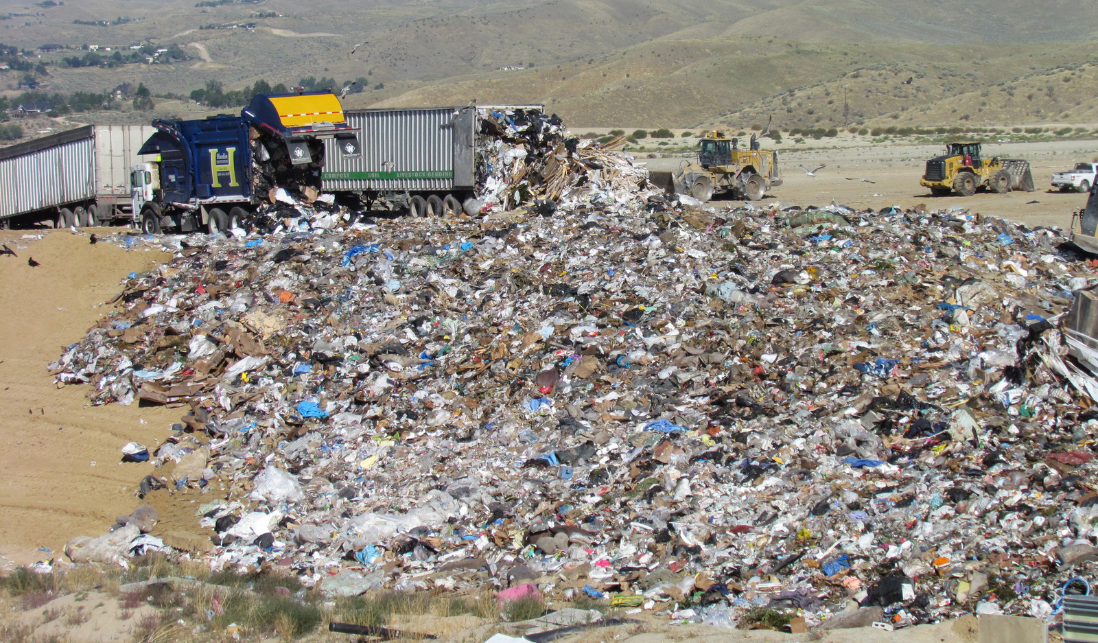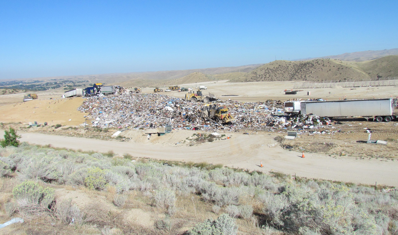 Trash. It’s actually a fairly nice day for it - you can see off into the distance. This is all hidden behind some foothills from Boise proper, and you’ll never see it unless you head up the landfill road (or happen to fly over it). You know how big a standard trash truck is - so scale from that. This is a “sanitary landfill,” which means that the trash is covered with dirt at the end of every day. It doesn’t just sit exposed rotting in the sun.