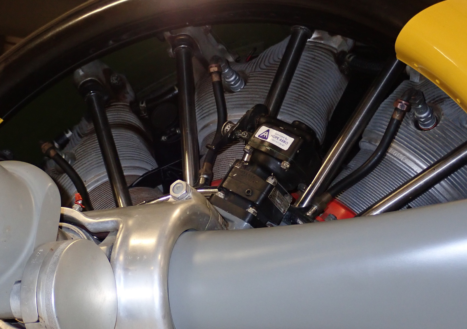 A very clean Le Rhône rotary engine is up in the front of the museum. This was an early rotary engine - not the later style radial engine. What’s the difference? On a rotary engine, the entire engine crankcase - cylinders and all - spins while running. It means you’ve got good airflow to cool the engine, but it also means you have incredible gyroscopic forces. It also meant the oiling system was rather hostile to the pilot…