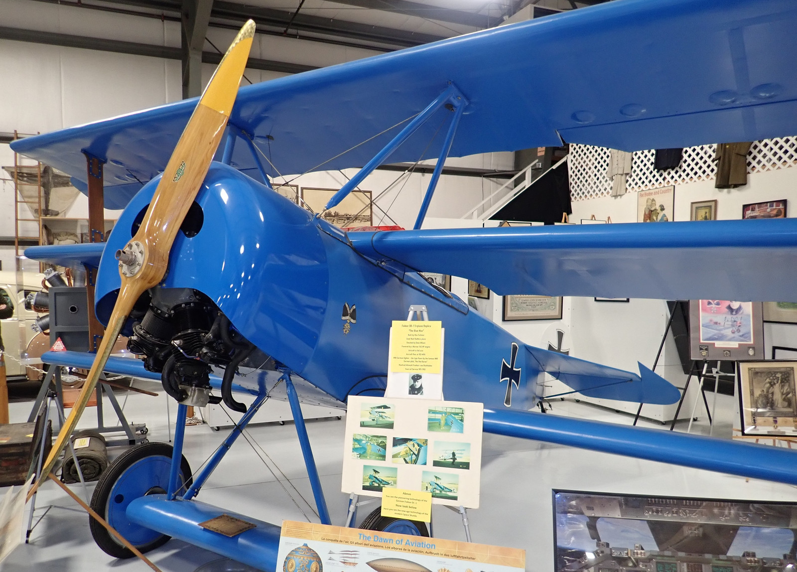 You also can’t miss the rather bright Fokker DR-1 replica on exhibit. While none of the original ones exist, there are a variety of replicas floating around. This was the Red Baron’s preferred plane, and was quite deadly in the hands of a skilled pilot (partly because it was rather unstable and therefore eager to turn).