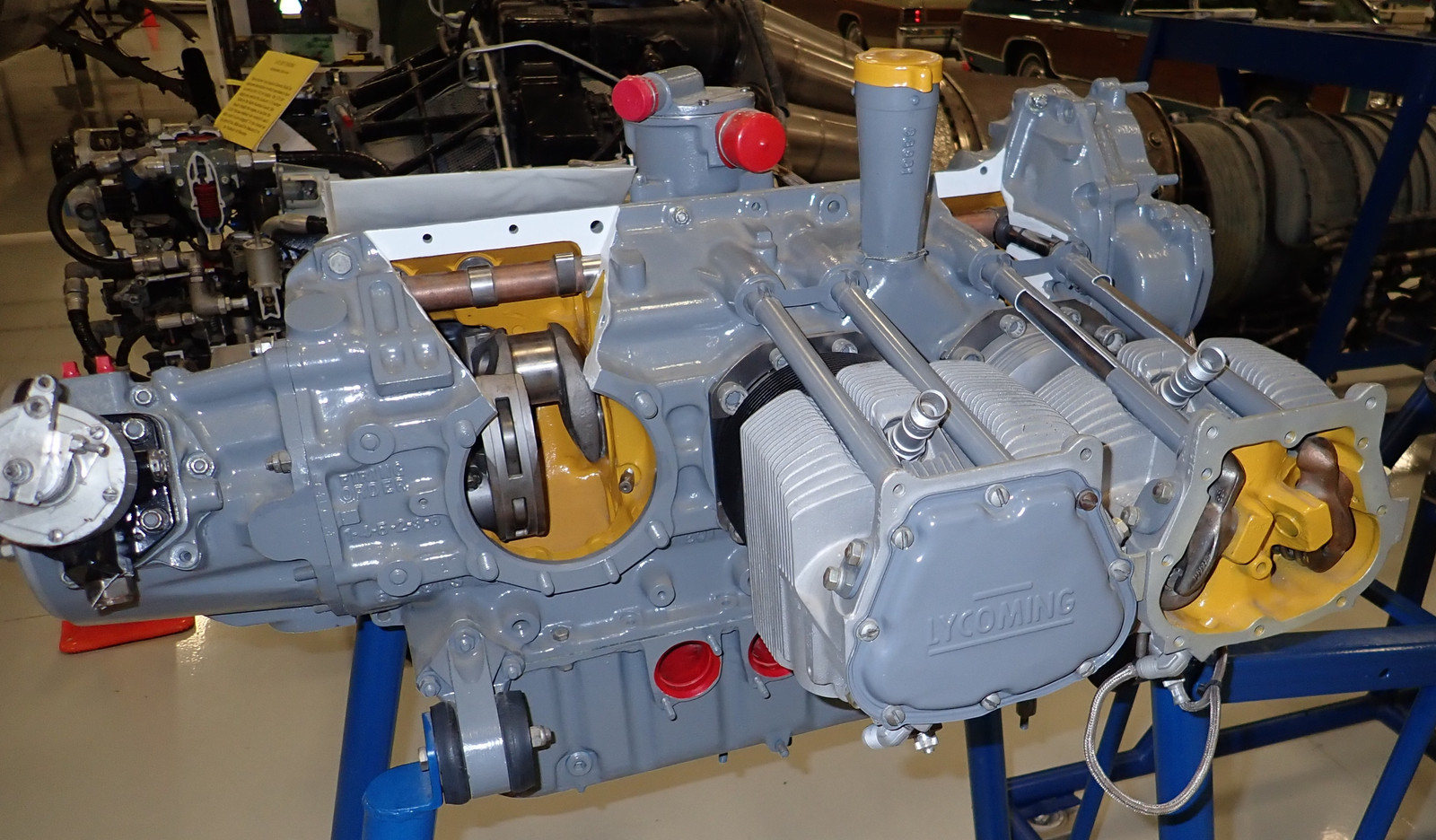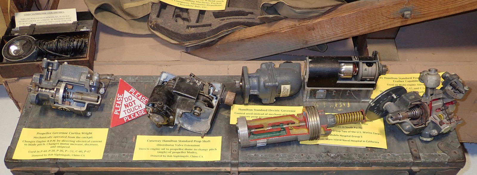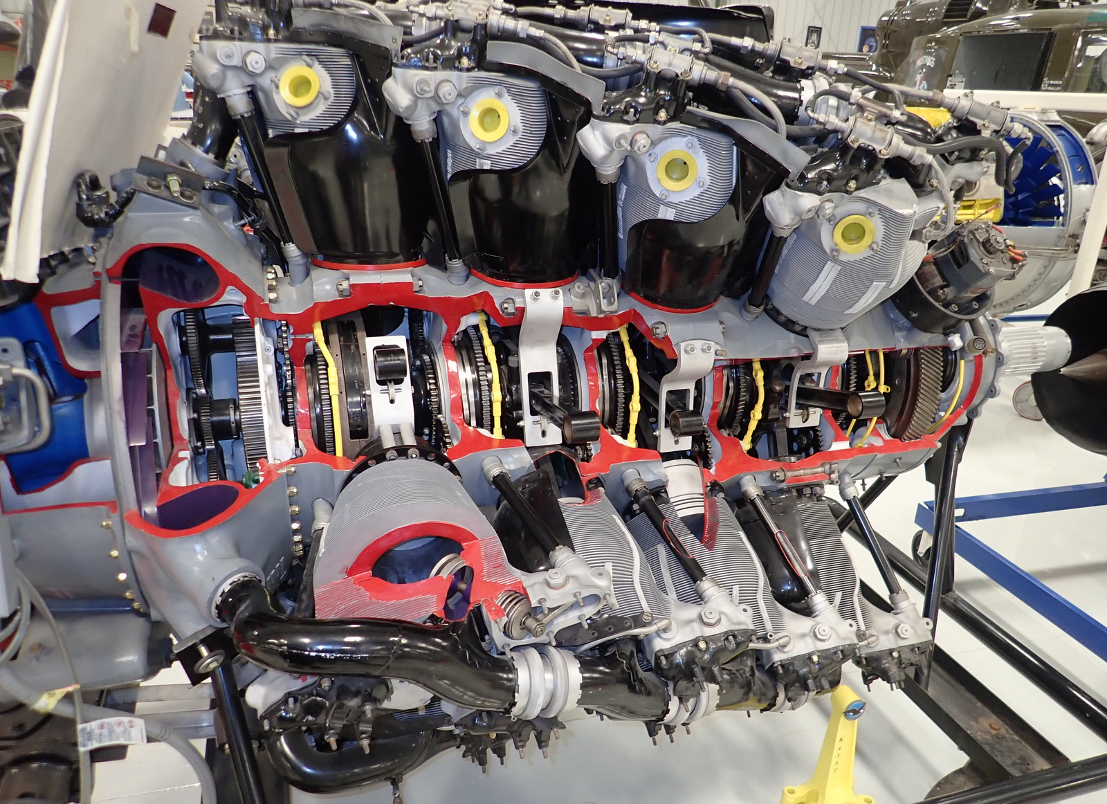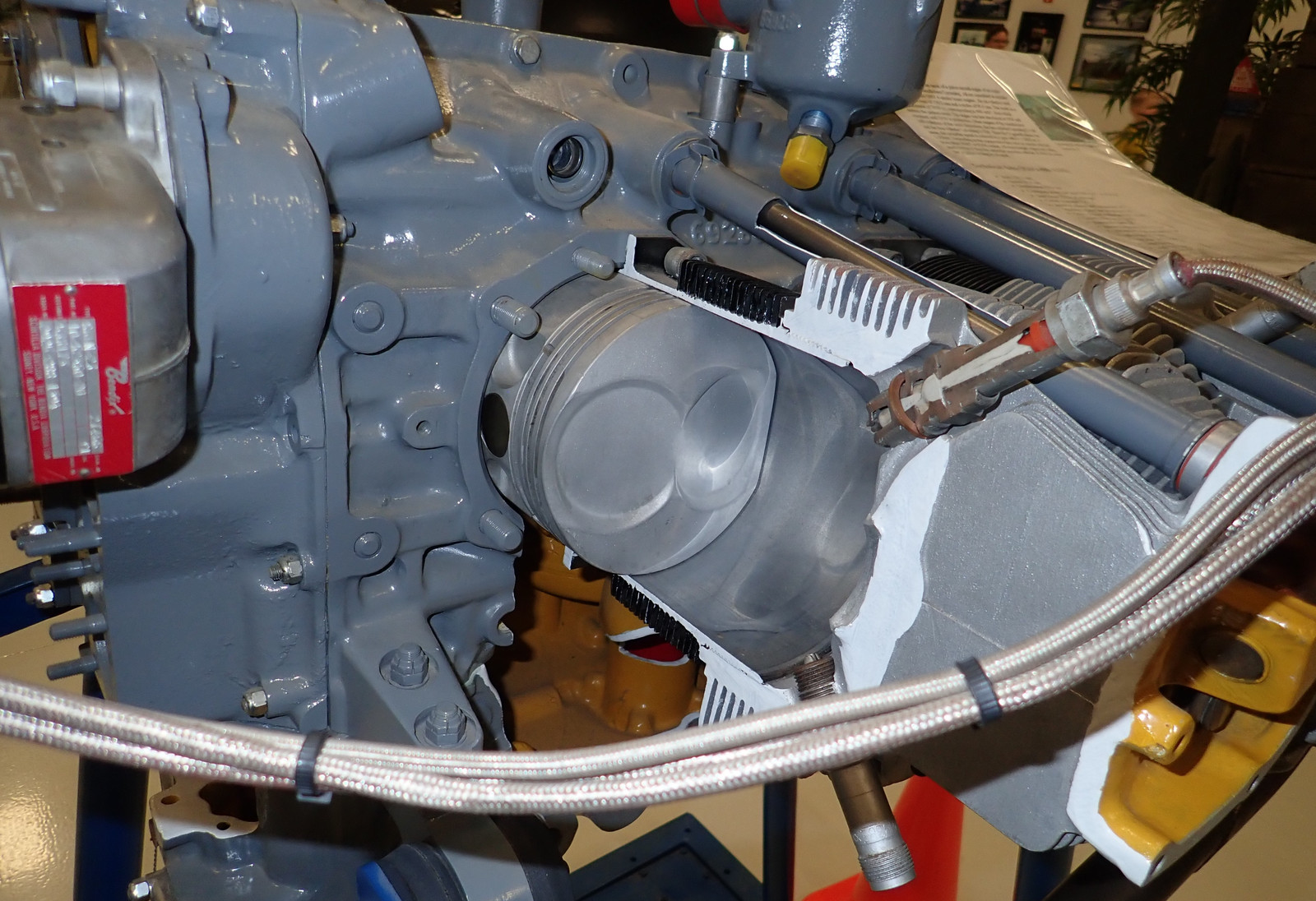 Now it’s time for all the sectioned engines! If you look carefully, you’ll also find an exhibit of sectioned propeller governors. These regulate the blade angle of the propeller such that the engine is always turning at governed speed - regardless of throttle position and airspeed. Constant speed props are awesome to fly behind.