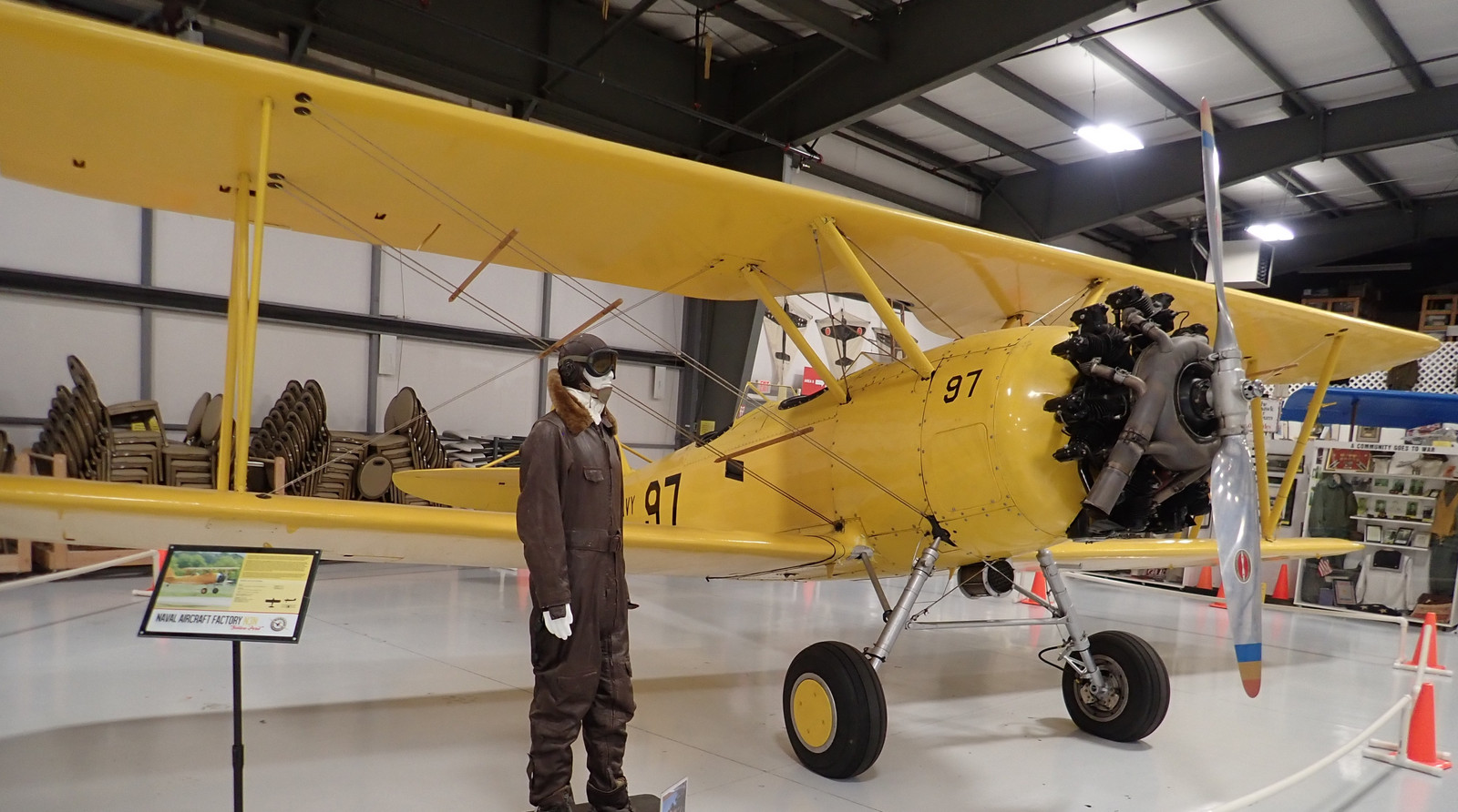 Next, a vivid yellow Naval Aircraft Factory N3N sits in the front section. Again, a 1930s trainer, built by the Navy. This one doesn’t have a cowling - perhaps for ease of maintenance. Most later radial engine aircraft had a NACA cowling of some variety, as they improve engine cooling while rather radically decreasing drag in the process. They really are a win-win!