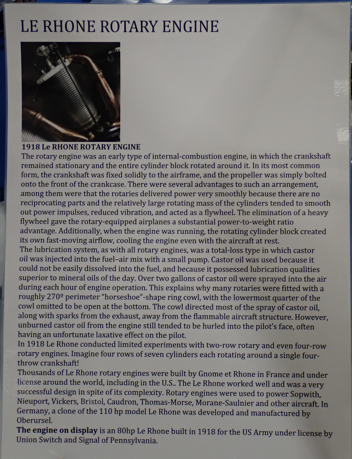 Actually, the exhibit has a great writeup on it. Seriously, two gallons an hour of castor oil in your face. Being clogged up was not a problem!