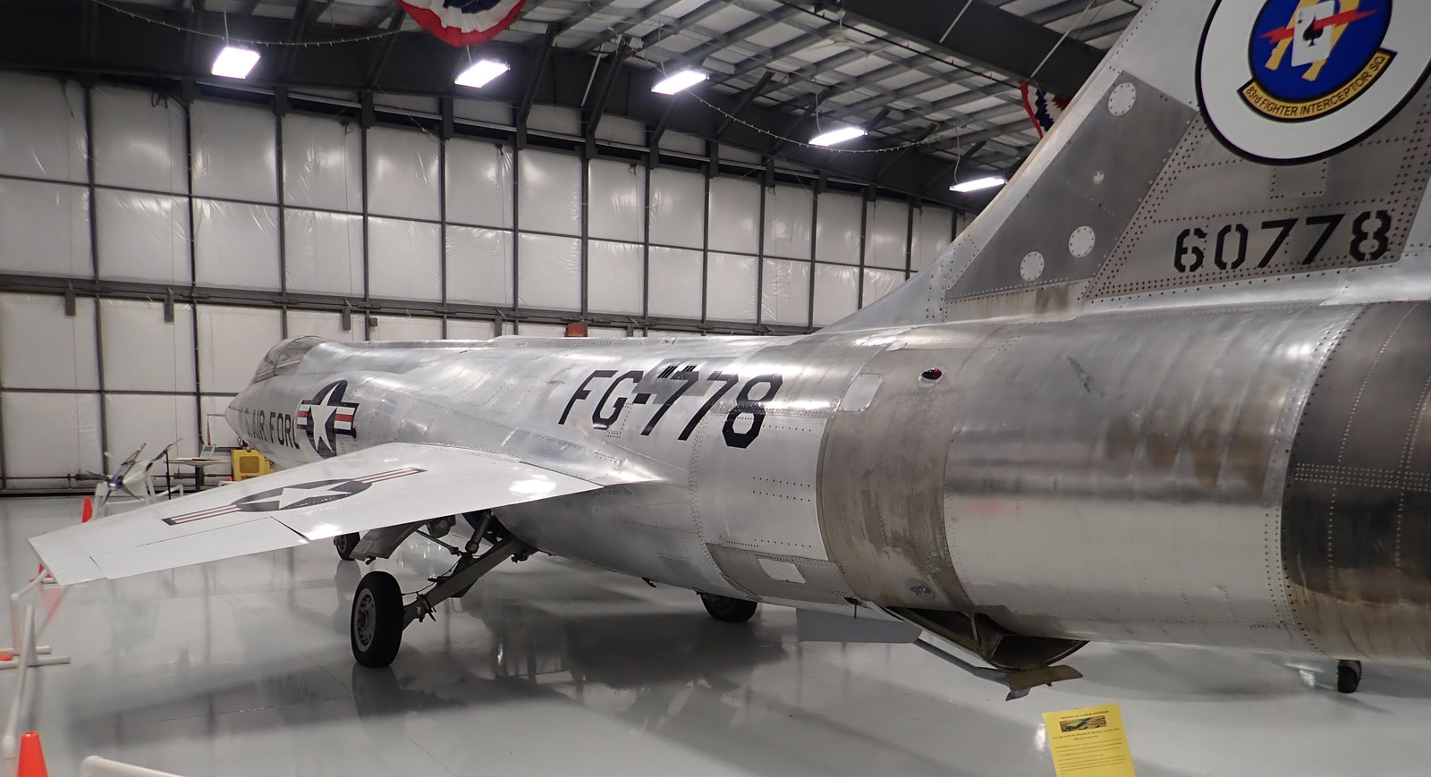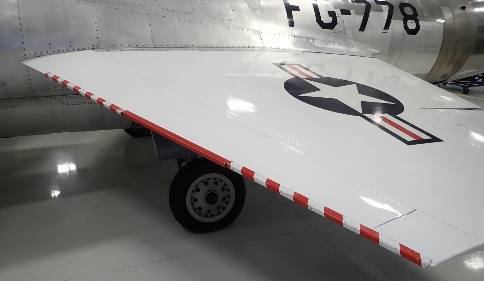 You can see the positions for the six claws - three on each wing. To the left is what I can only describe as a “prop cart” - it’s a railer that stores a few props off the ground for transport around. To the right, you can also see the F-84 - I wasn’t able to get any great angles on it.