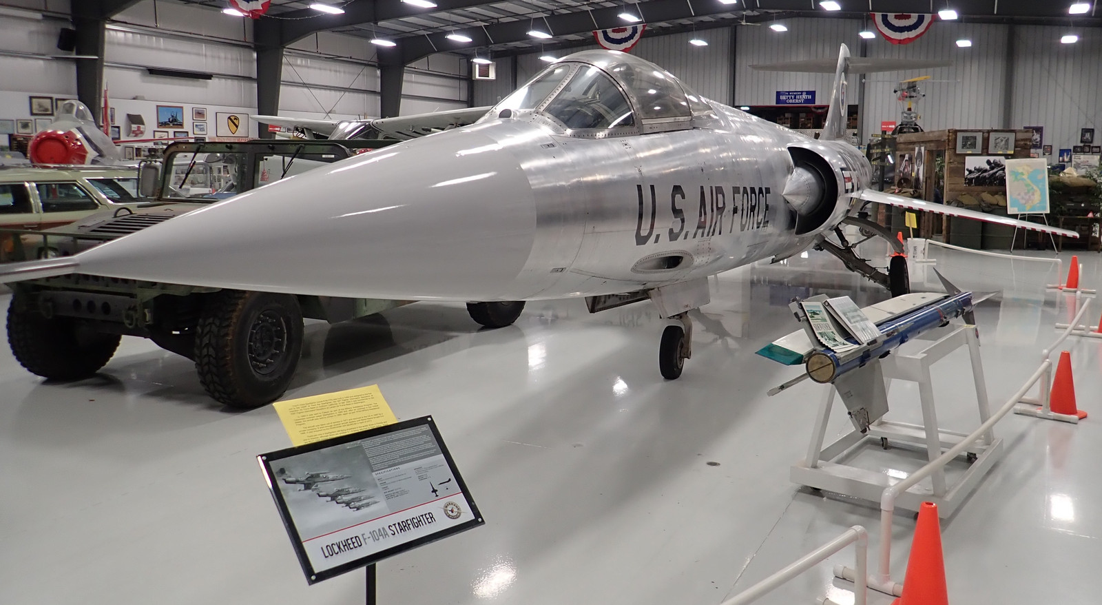 The American side has a rather hard to miss F-104. It’s called, with reasonable cause, the “Missile with a Man in it,” and it’s long, very pointy, and has an alarming small wing area.