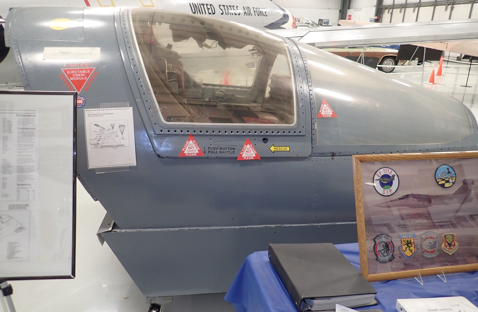 There’s also the oddly standard aviation museum staple, an F-111 cockpit/ejection pod. To deal with high altitude/high speed ejections, or low altitude/high speed ejections, the F-111 kicks out the entire cockpit pod in something that has to be rather violent.