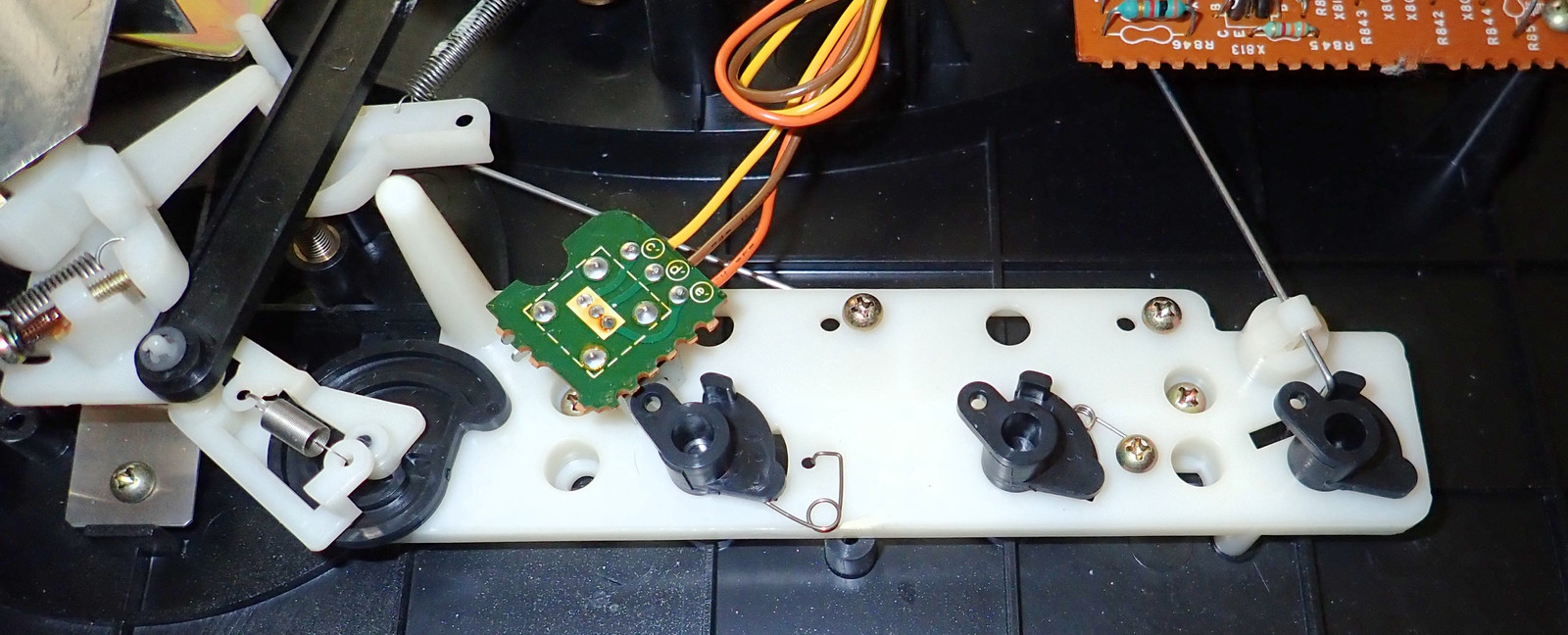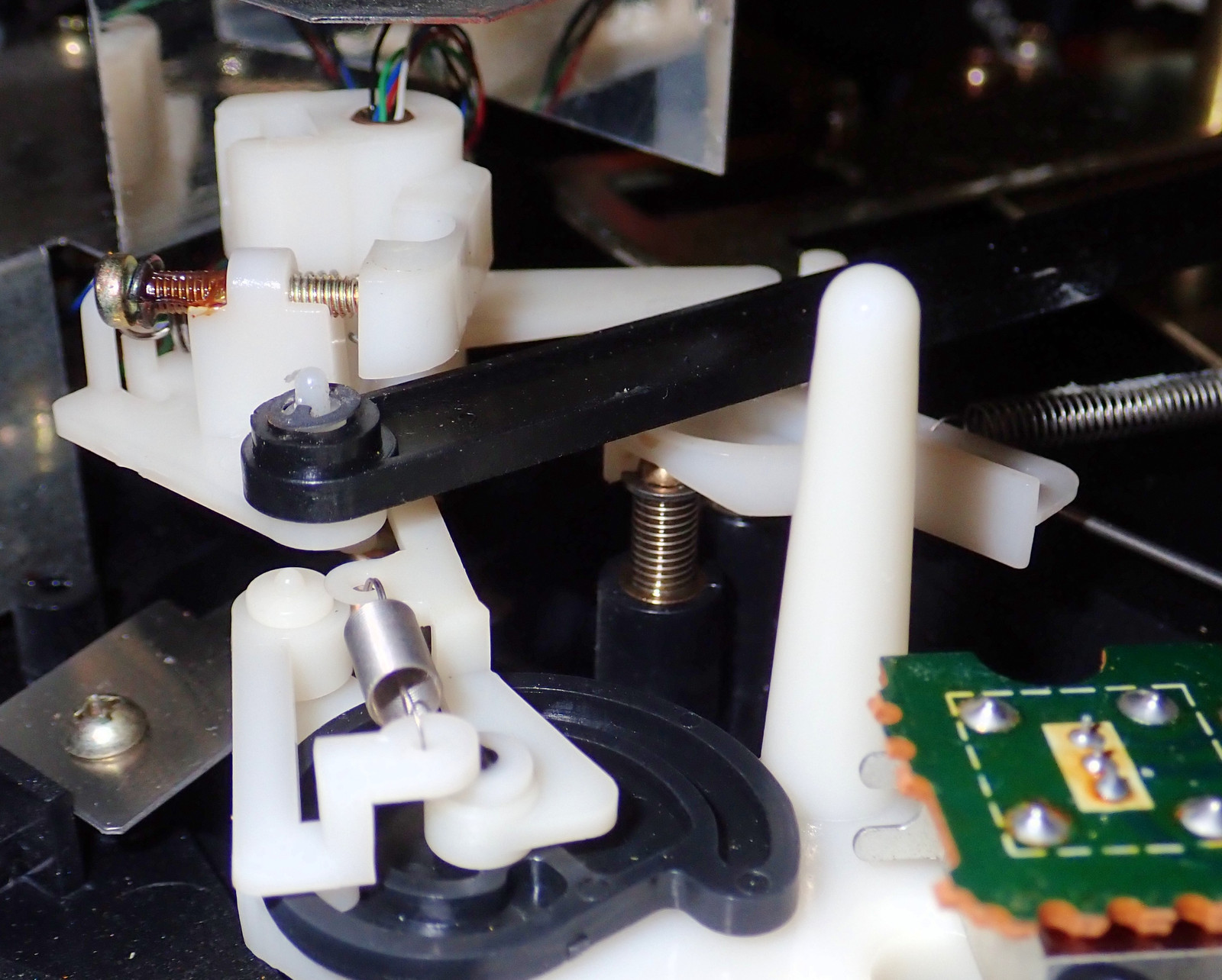 But the major problem was the broken cueing mechanism. I took the mechanism for that off, and discovered that, indeed, it was broken. The plastic actuator had split, the spring was rattling around doing nothing, and it simply didn’t work.