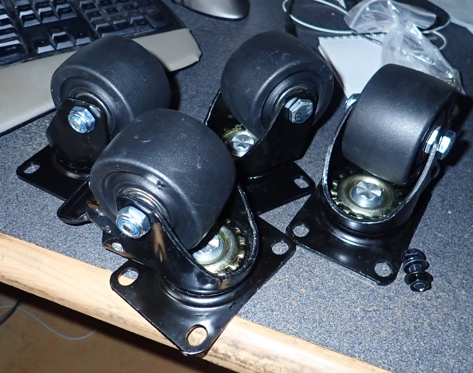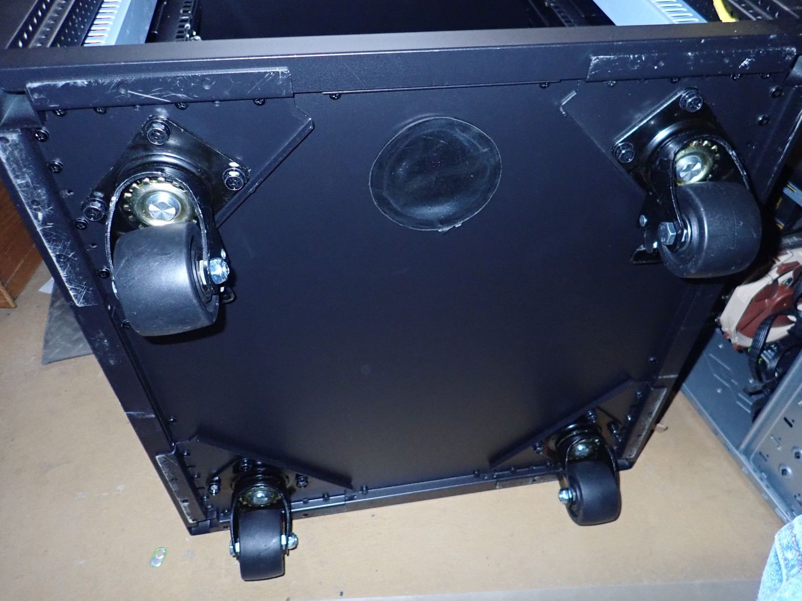 The casters are properly stout little units. The batteries are 100lb each, and the rack weighs most of that too - so it’s 400 pounds rolling around. These are absolutely up to that sort of weight, and even fully loaded, the rack rolls around easily in my office.