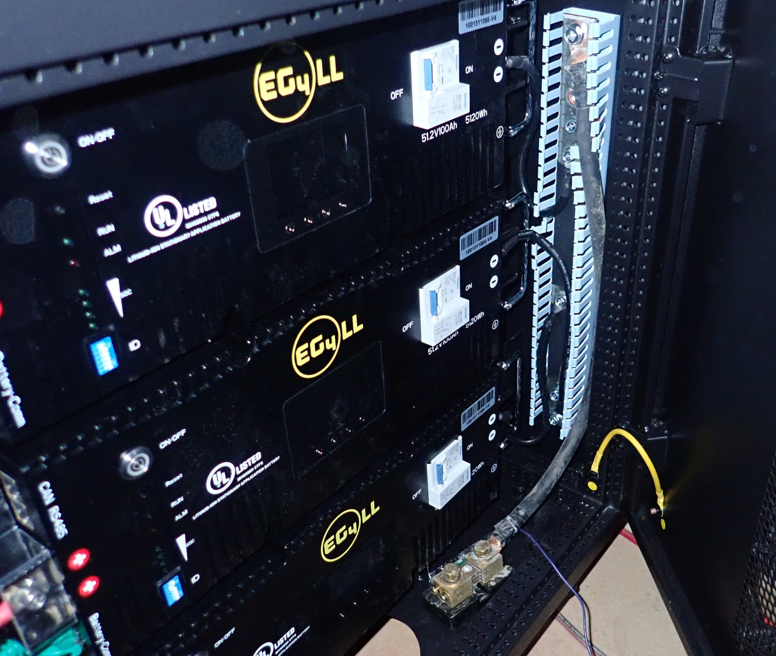 - Related, for very light net loads, I’ve noticed that one battery will remain connected, while the others are in standby. For me, it’s the top battery, which is the lowest ID - though I don’t know what the algorithm here is. Again, they sort things out as needed, but don’t be surprised if it doesn’t look like all your batteries are running when you’re purring along in float. As I write this, I’ve got 400W flowing from my panels to my inverter, and all my batteries are in standby.