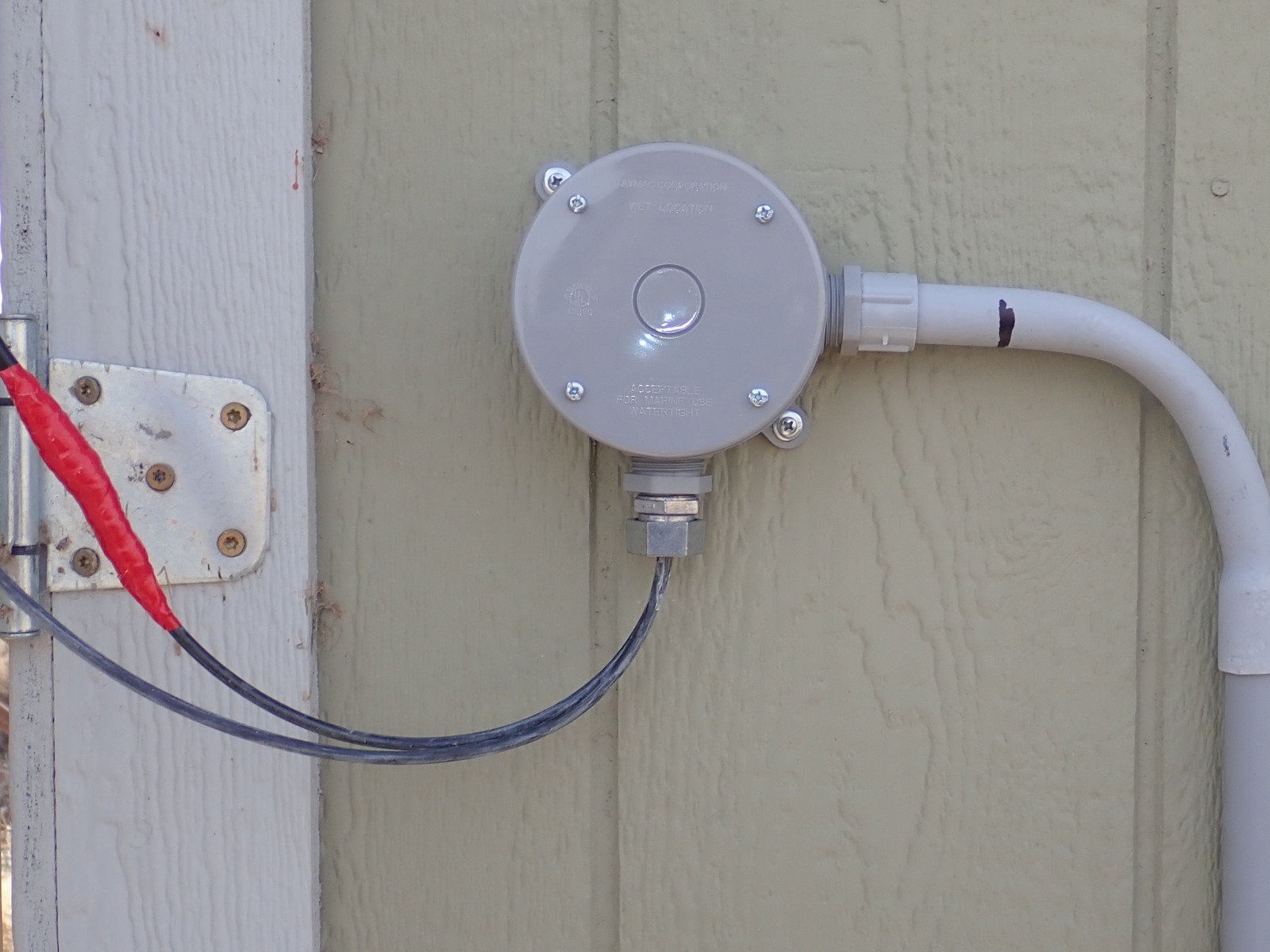 While I was rewiring stuff, I routed my morning panel wiring through conduit. I’d originally run the wiring down low along the base of my shed, and that ran into a certain problem this year that I believe is called “bunnies.” They chew on everything, and I’m fairly certain, by the shape of the cuts, that this included my wiring, somehow. But the wiring was getting some UV damage on the insulation and the time was right to replace it anyway. May as well run conduit!
