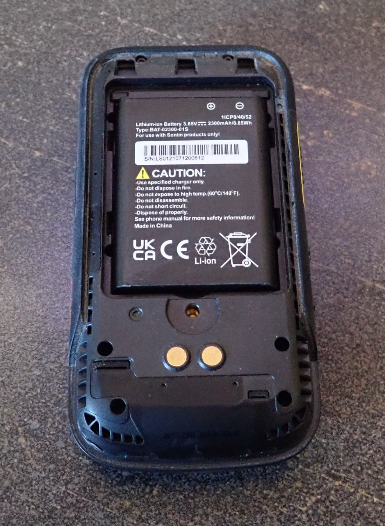 The back cover has a nice stout gasket around the battery compartment to keep the water out of the parts that matter. You’ll also notice a screw in there - unlike a lot of the flip phones and removable battery devices out there, the back won’t pop off when the phone is dropped. It just stays firmly in place, keeping everything protected. It’s a nicely thought out device for rugged use!