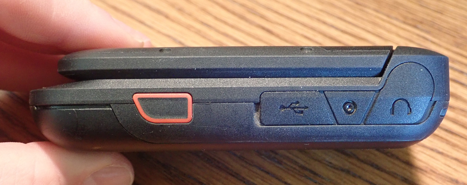 There are two ports on the phone - one USB-C charge/interface port (defaulting to charge only - I’m glad to see this change over time), and a headphone jack. If you have headphones in, the phone also will work as a FM radio in the way that most of the modern flip phones do (which I appreciate). The red button is, by default, an emergency button, but you can reprogram them in the phone for a range of features.