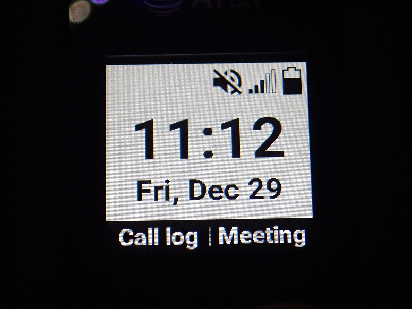 On the other hand, it has a useful front screen. Some phones (the Flip IV, for instance) have a front screen that is “A useless decoration.” The XP3+, on the other hand, has a wonderfully useful front screen for a range of things. By default, it shows the phone status - time, date, mode (“silent” here), cell signal, battery… which, by the way, I charged 5 days ago in these screenshots. But the buttons below allow you to unlock the screen (right front button, then volume down on the side) and change things around. The most useful, that I use regularly, is changing the sound settings - though the label indicates what you’re changing to - not what mode you’re in. Here, I’m in the silent mode, and if I hit the button, I’m going to be in Meeting mode (vibrate, mostly).