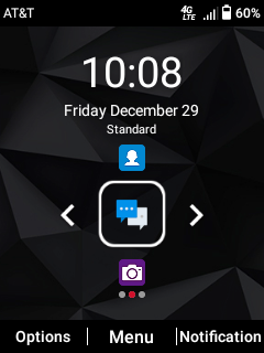How is it to actually use? As long as you don’t expect it to do anything other than calls and texting, and you remember your T9 predictive texting, it works just fine! The homescreen has a simple set of options - contacts, messages, and camera. Notifications live on another screen (and with the volume of the ringer, you’re not going to miss them in a noisy environment easily), and to the left is a settings menu.