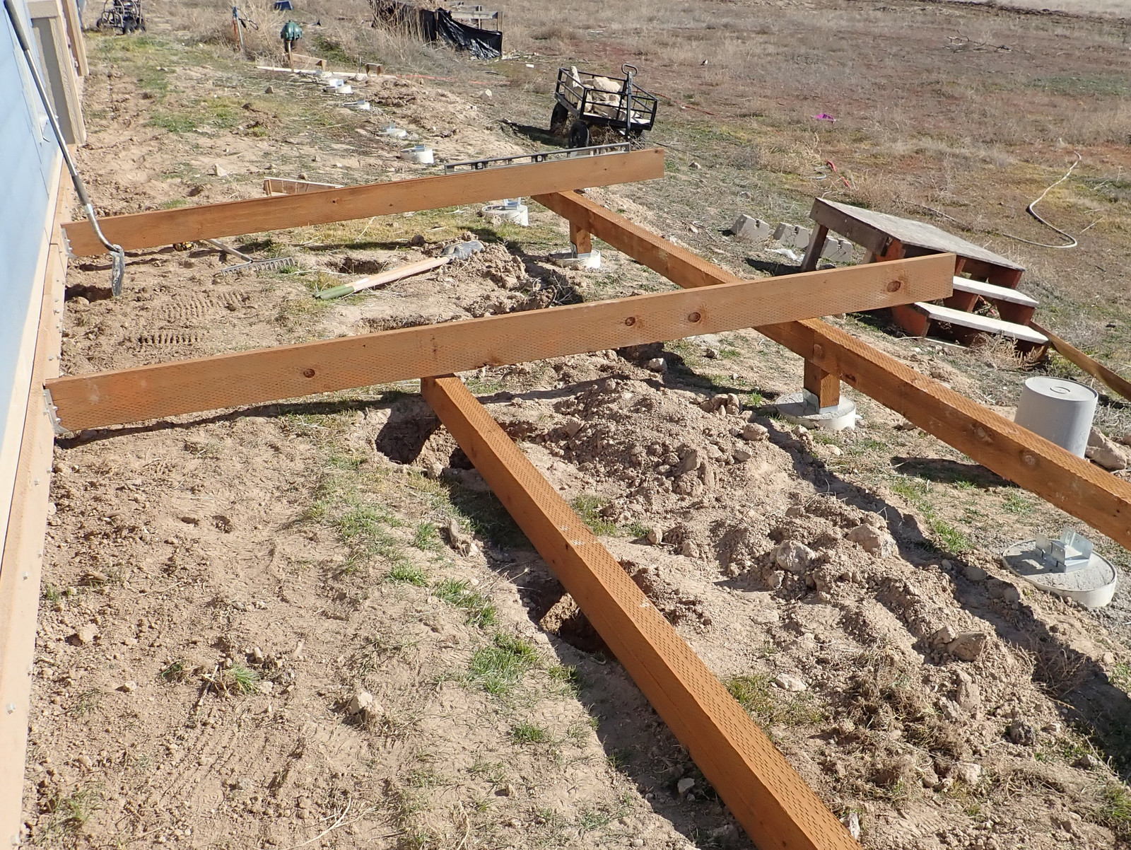 I ended the last deck post with the full row of concrete pilings completed, and the ledger board on the house. That still leaves a few holes left, and, of course, the rest of the wood framing! But after that, I’ve got something ready to Trex!