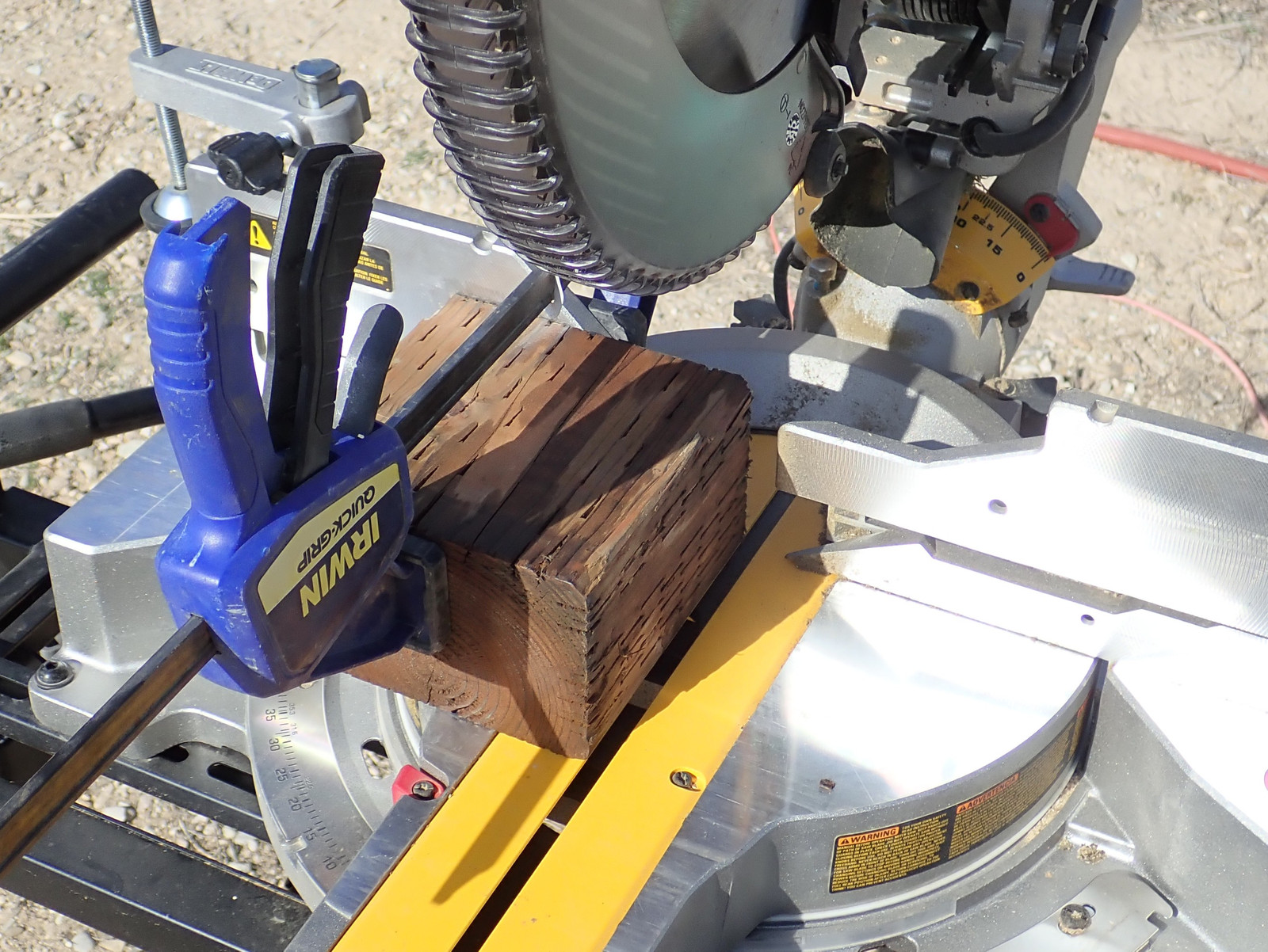 Nothing like a good miter saw for shaving a tiny bit off the edge! One clamp to hold the wood in place later (because I’m not going to put my hand quite that close to a blade!) and I was able to shave just a bit off the edges.