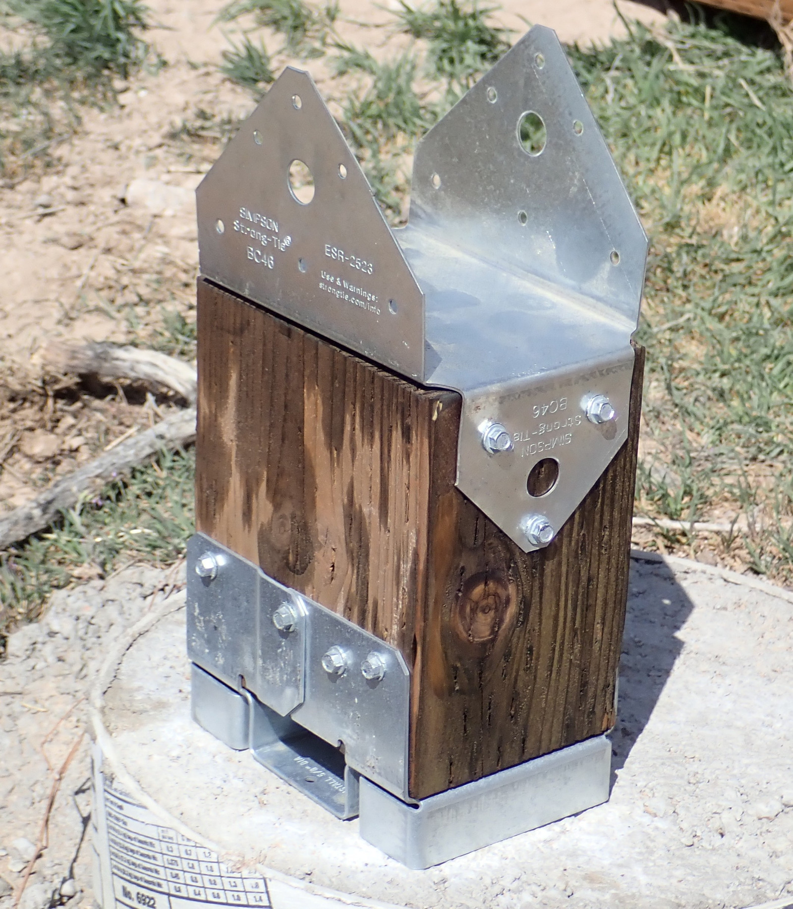 The post bases I found for this support beam are almost perfect for the sort of thing I’m doing here. They have the post cup at the top, then a 3/4” threaded rod welded on, with a nut and washer to set the height. As long as the top of the concrete is close, these can be adjusted up to fill the gap and spread the load! Again, avoiding precision concrete work is ideal for me, though I’ve recently learned some tricks I want to try next time I have to bore precision holes in concrete.