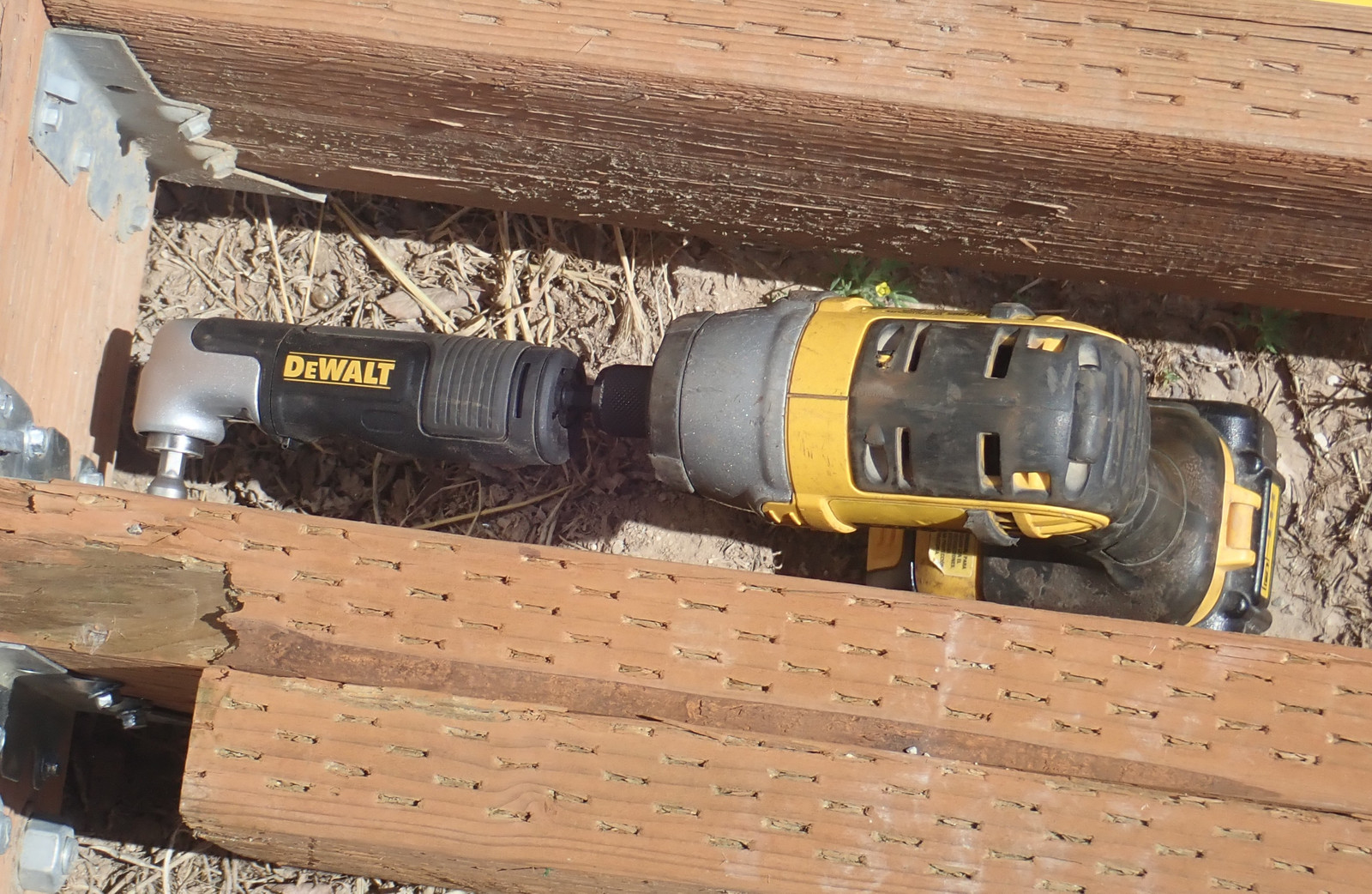 When I did the initial framing, I knew I was going to have to replace a few sections for the deck surface design I planned - but I’d not yet finalized what I wanted to do (I eventually went with “the cheaper option” instead of “everything even”). Working between joists when you need to add a range of “blocker boards” can get tight - so I had an excuse to pick up a 90 degree impact driver adapter! Somehow, this manages to survive the abuse of an impact driver and turn the impact torque 90 degrees. I’m interested in what the gears look like, and will probably pull it apart after it fails just to see what’s in there - because “impact driver” and “gears” aren’t two things I normally consider compatible.