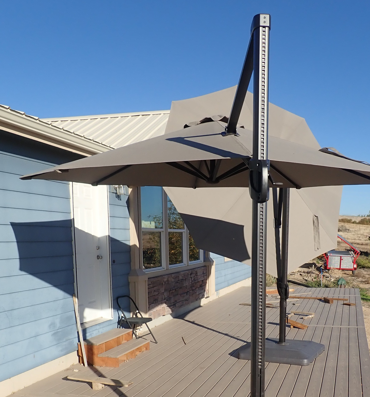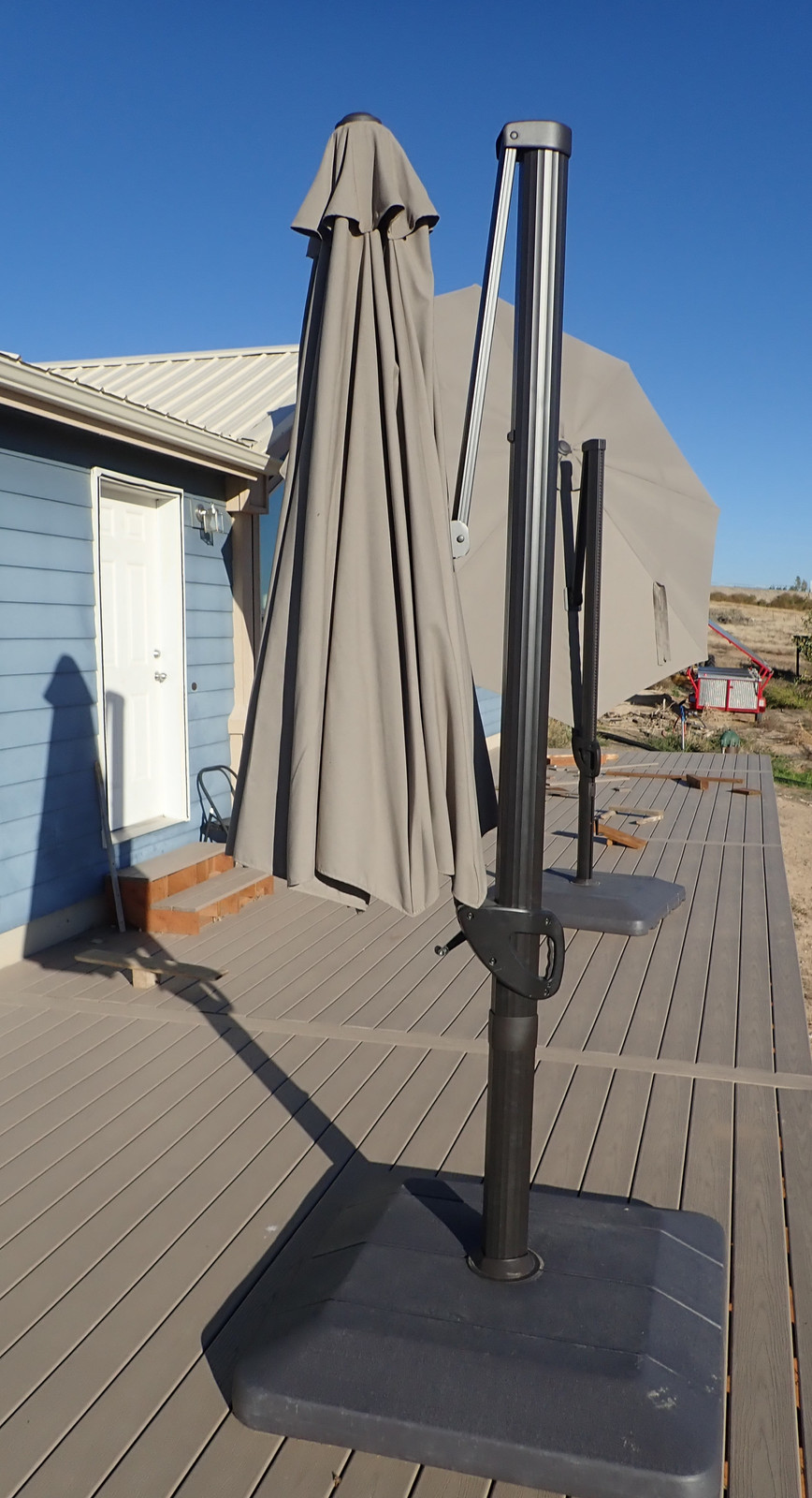 You’ll notice in some of the photos above some shade umbrellas, and they’re worth talking about. I’m using them more as a short term solution, because I have plans for something better down the road - but they provide some useful shade from the sun and rain should you care to have something more than a full sun exposure. They’re not cheap at $500 or so each, but they are well built and should work for some useful while. I’ll see - we have a stupidly high UV environment here that just destroys stuff in short order, so I’ll be interested in how the more expensive ones hold up.