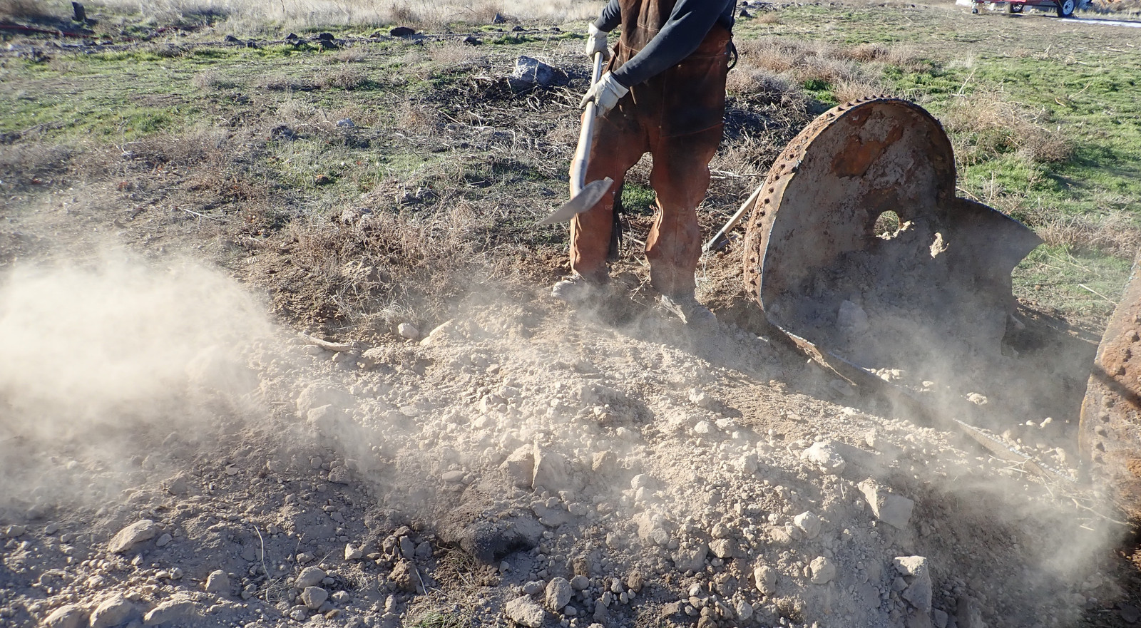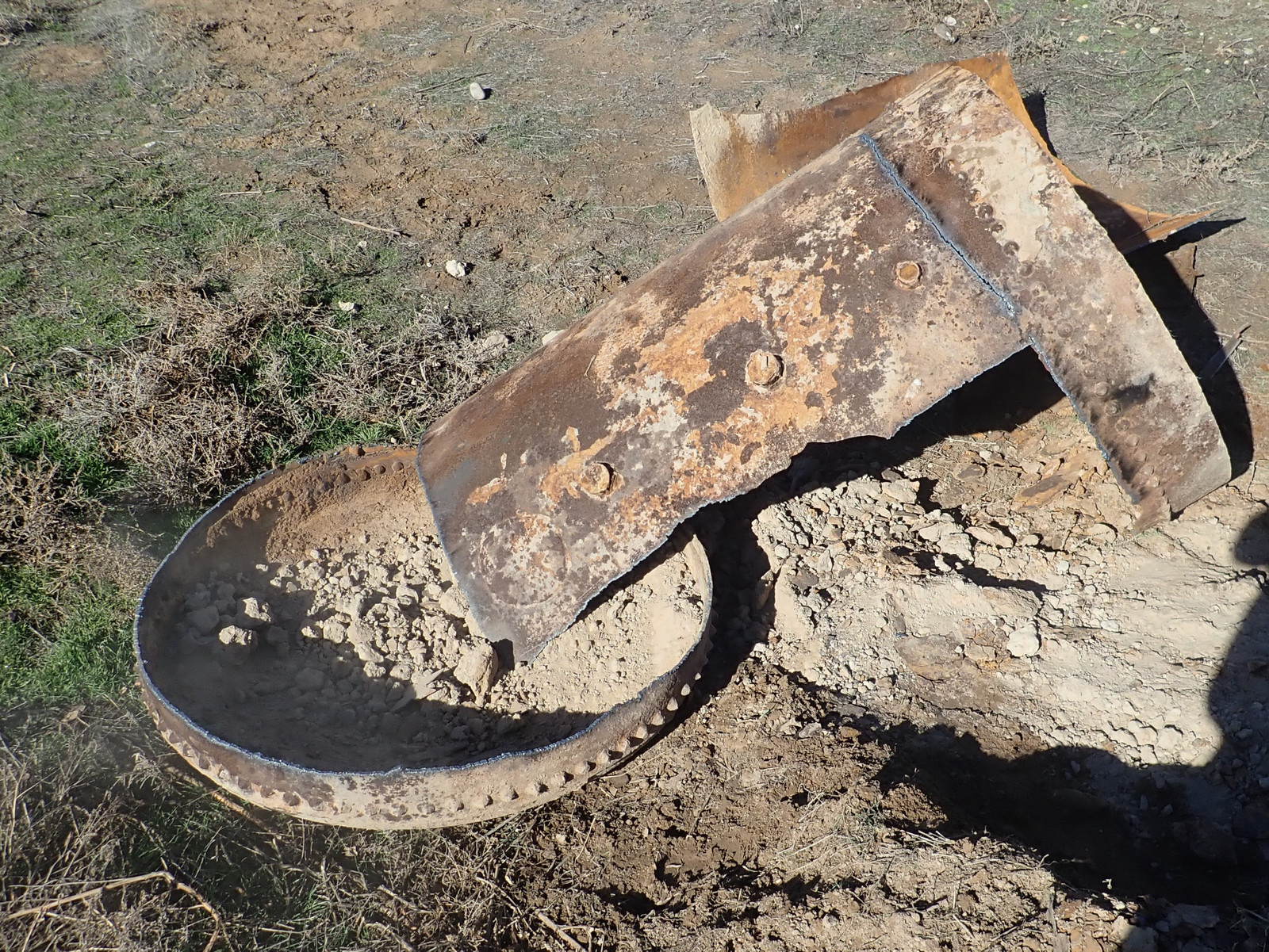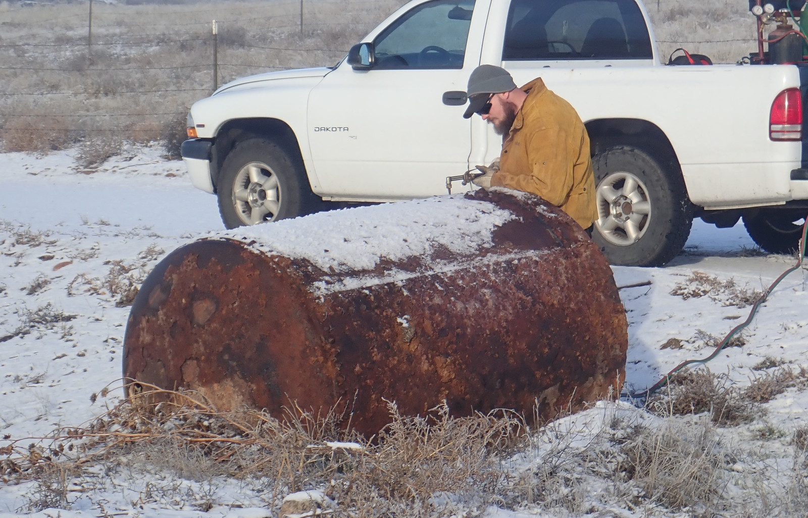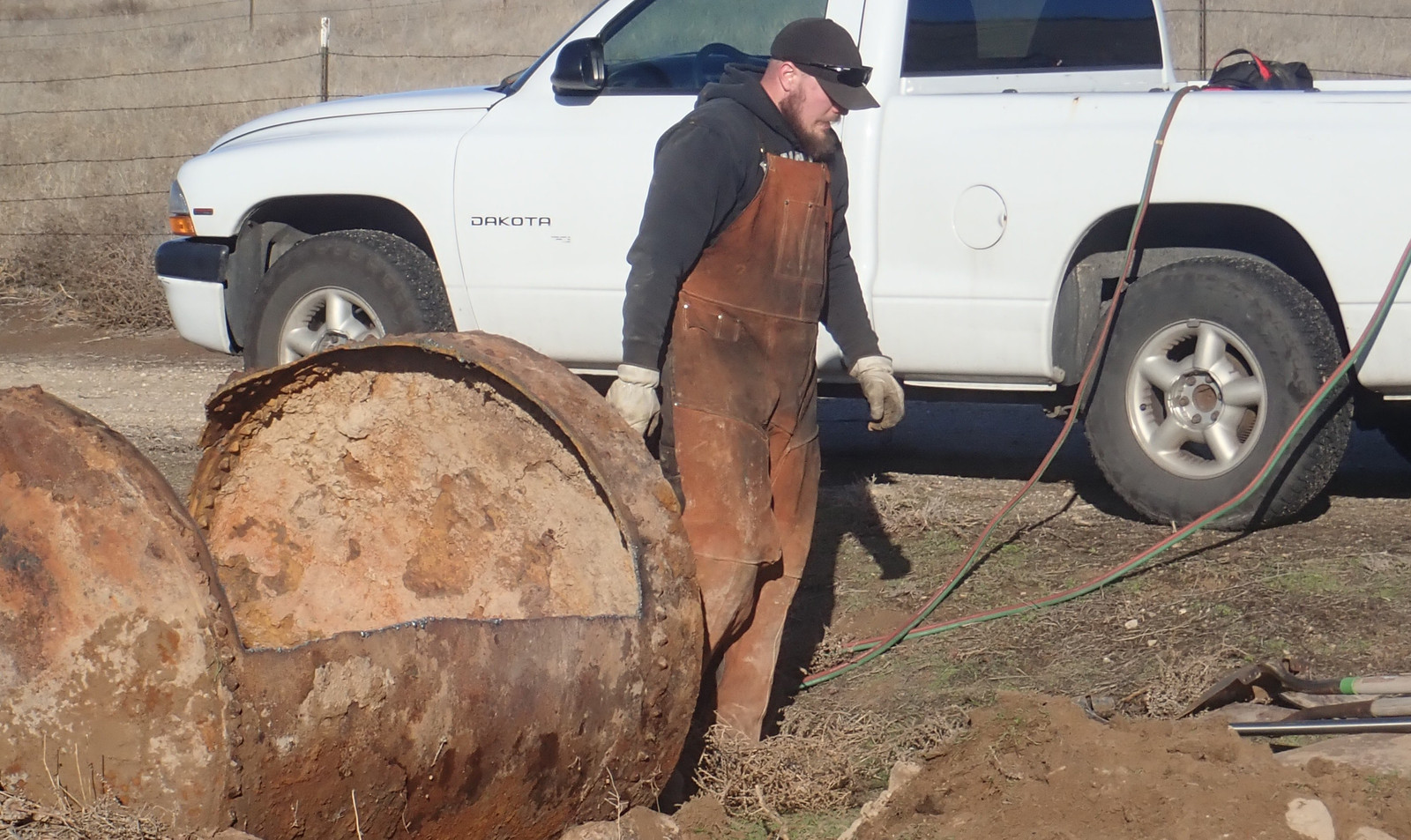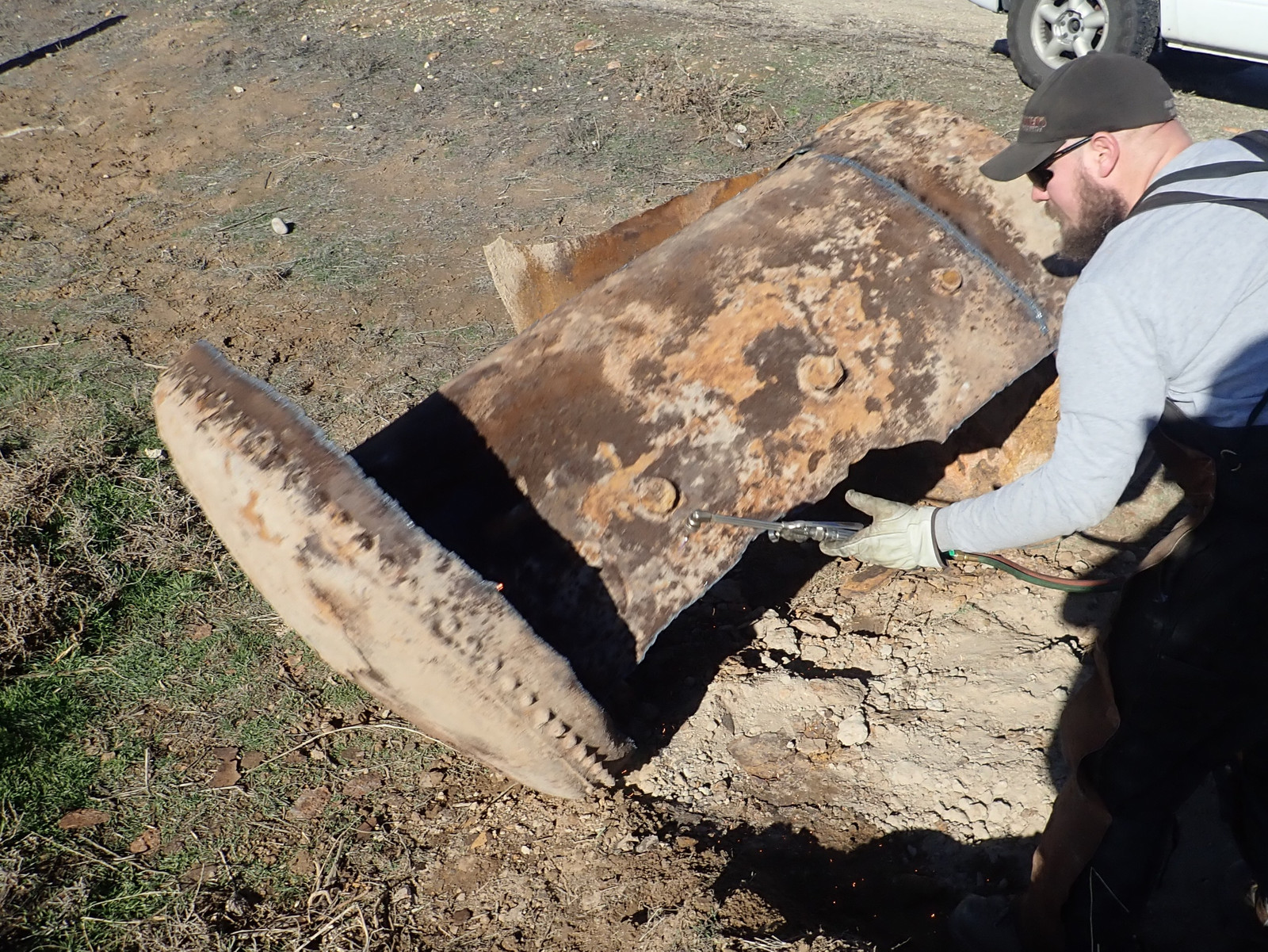 Cutting torches and grinders: Two good ways to light hills on fire. This sort of thing is why I waited until the hill was very wet to have someone come torch the tank apart. A cutting torch (at least this style) uses an oxy-acetylene flame to heat the metal up, and then a blast of oxygen to actually do the cutting - it burns the metal and clears the molten bits, and I understand that if you’re good and the metal is agreeable (this metal was assuredly not), you can turn off the acetylene after the cut is started and just run pure oxygen for the duration.